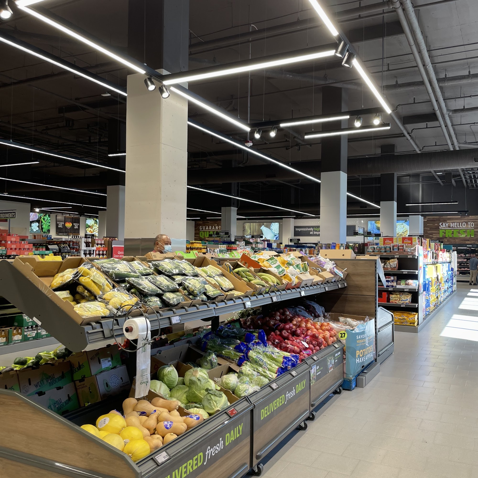 Spacious and clean atmosphere. Good selection on most major grocery brands and priced below othe major grocery stores in the area. Surprisingly good produce selection.
