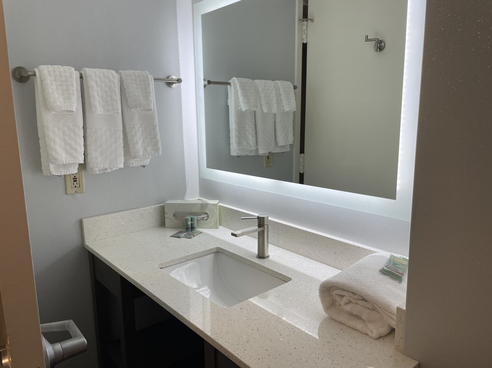 Clean room and bathroom. Friendly staff. There were grocery stores and restaurants near by (within few minutes driving). The breakfast served was not great. But there was a Safeway bakery close by.