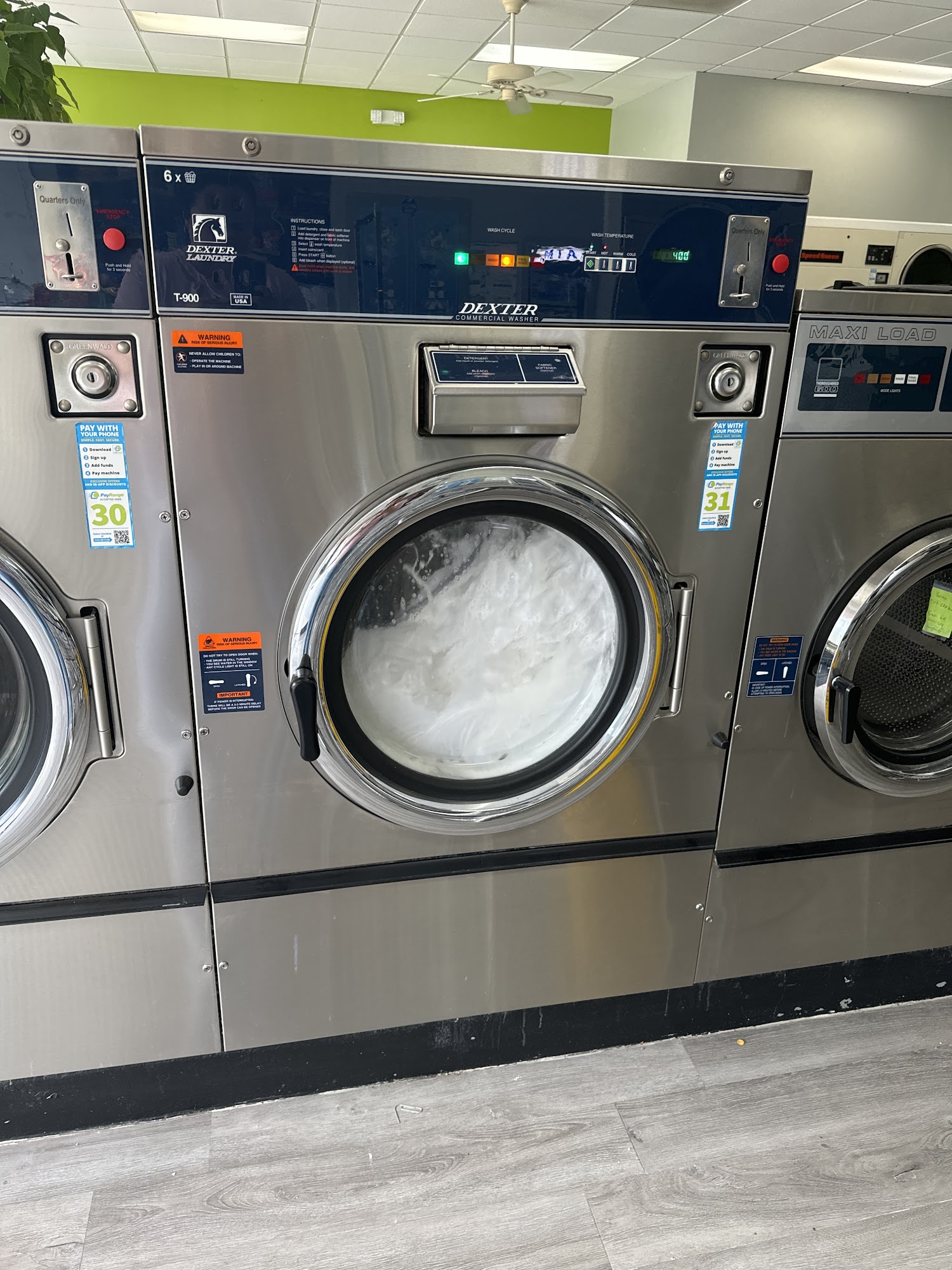 Laundry Station offers a reliable wash and fold service with helpful and friendly staff. The laundromat is clean and well-maintained, with working appliances and convenient payment options like a mobile app. Customers appreciate the affordable detergent pods and the variety of washer sizes, from $3 for a small load to $7 for a large one, as well as different dryer sizes, with the largest costing $2. The location is convenient, close to the highway, and the inside and outside seating areas are comfortable. There are snacks and drinks available for purchase if needed, along with laundry detergents and laundry bags. Although the free WiFi password behind the center didn't work for some, cell service is good in the area. The machines are clearly marked when out of service, and the place is regularly cleaned, with staff constantly vacuuming lint traps and wiping down surfaces. Customers find the prices reasonable, and the overall environment is nice and quiet, making Laundry Station a favorite for many.