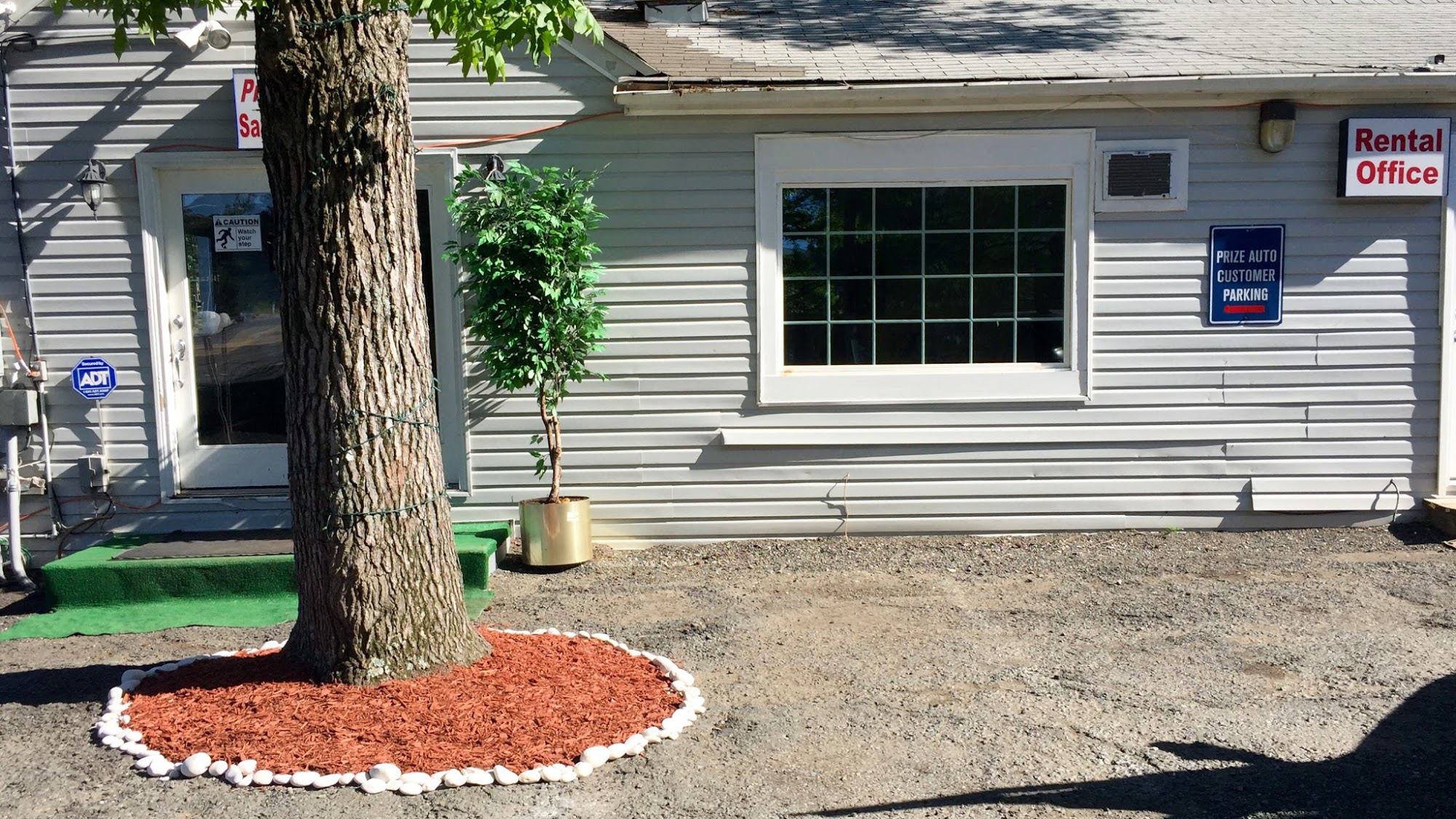 Fronf entrance may seem small but they have a huge lot behind. Great garage work