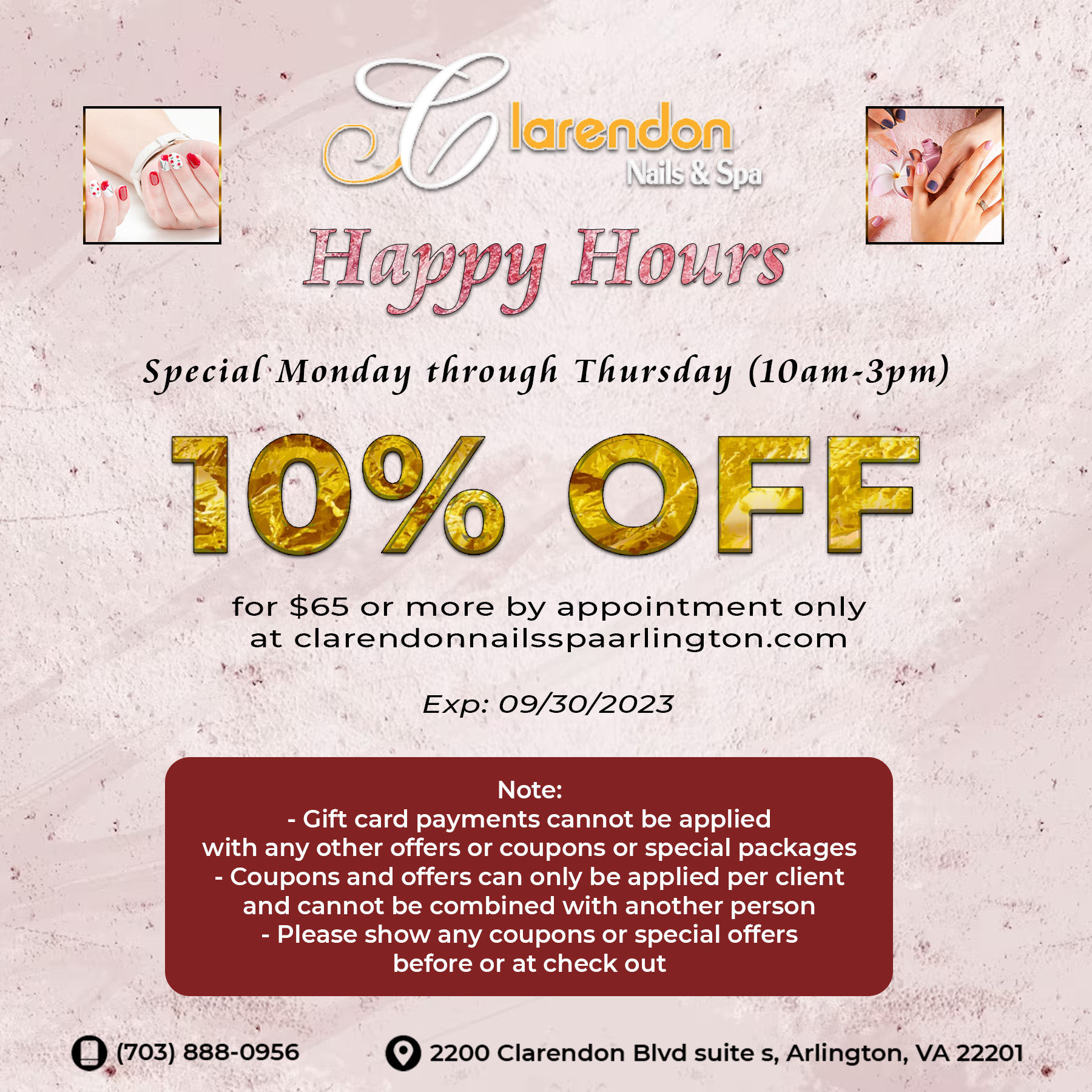 Clarendon Nails & Spa – We proud to be one of the best nail salons, located conveniently in Arlington, Virginia 22201. At our nail salon, clients enjoy the luxurious & comfortable atmosphere at affordable prices! Come visit us, you can enjoy our full nail care and spa services with the highest quality and standards. We want to make sure, you will have the most pleasant experience at our salon. Check out our services, and call us to make an appointment today! Our salon is equipped with the latest modern tools and instruments. Our clean and beautiful space would make you feel comfortable, relax and all of your fatigues and tiredness will immediately fade away.