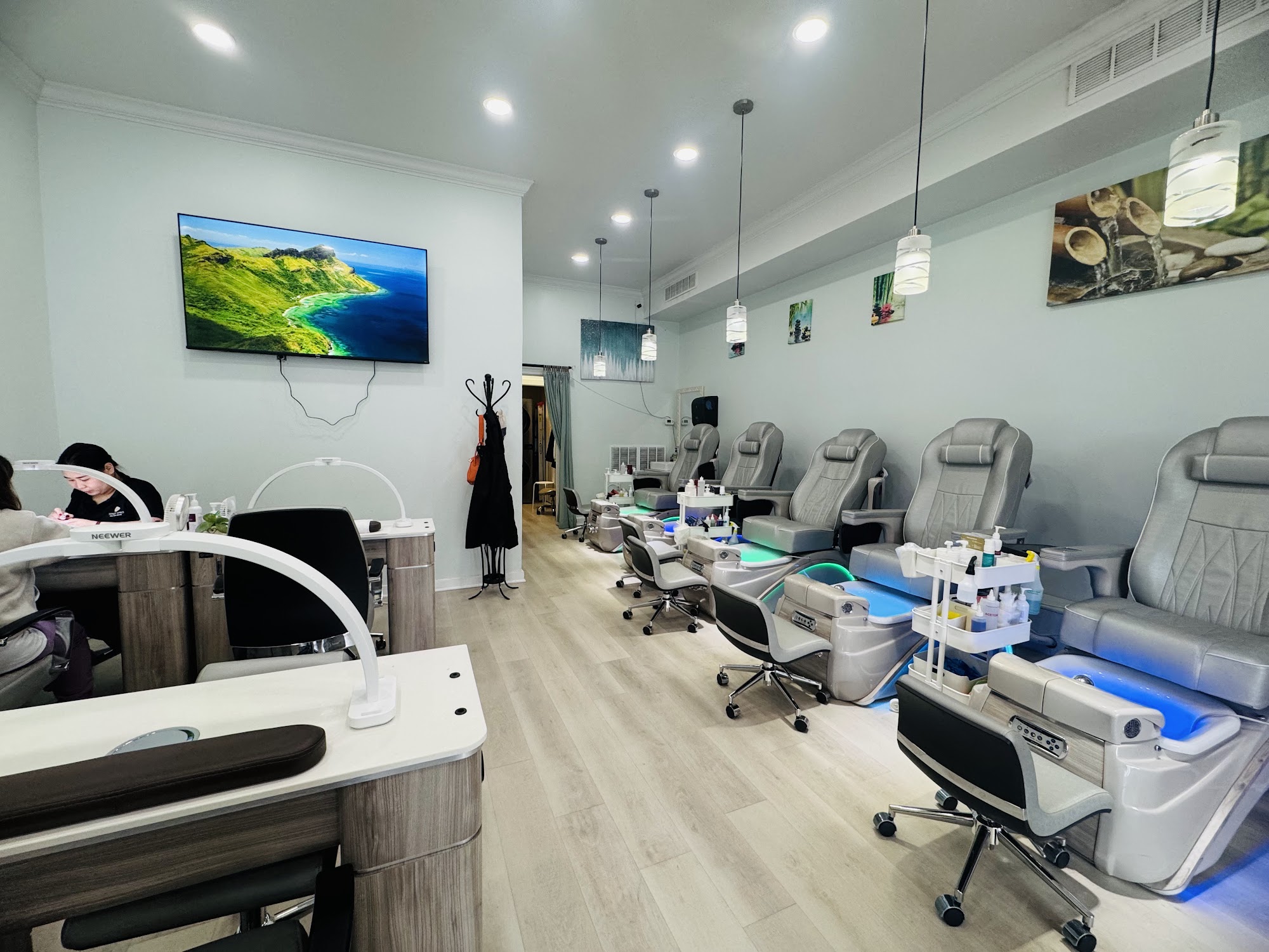 Tenley Nail Spa - Non Toxic Salon provides a haven of eco-friendly nail care, putting clients' and technicians' well-being first. Located in Arlington, Virginia, the salon combines organic products with acupressure massage methodology to promote comfort, improve circulation, and revitalize energy. Catering to various beauty needs, Tenley Nails offers manicures, pedicures, specialized treatments, nail care, and waxing services. They incorporate vegan polish and the use of an air-activated Steam Eye Mask for enhanced relaxation. The salon is dedicated to delivering exceptional experiences and low-toxicity products, making it a holistic destination for ultimate relaxation and rejuvenation.