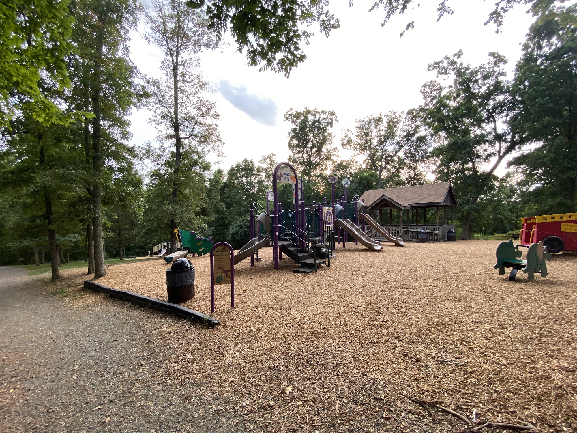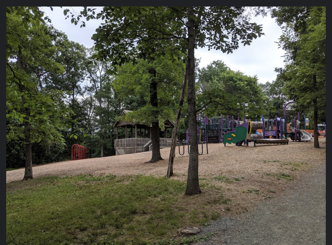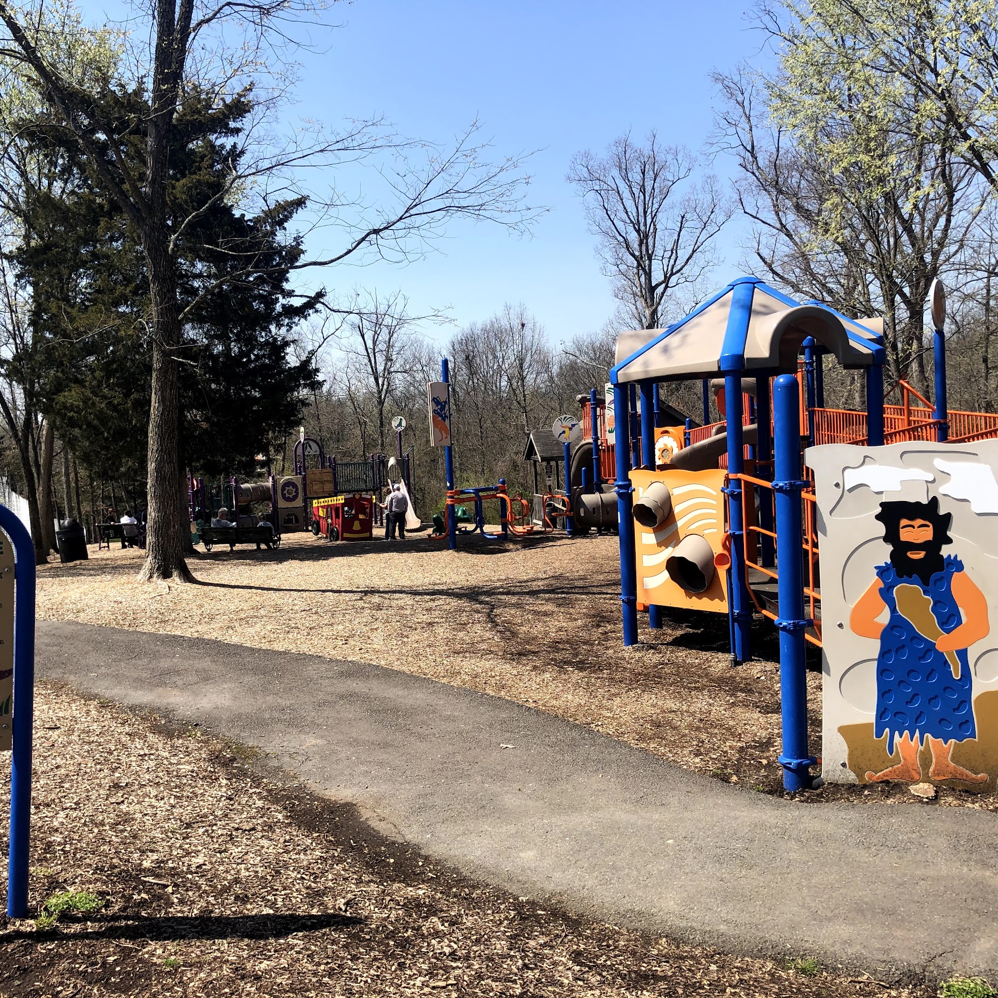 4 playgrounds for all ages. Also has bathrooms and a nature path