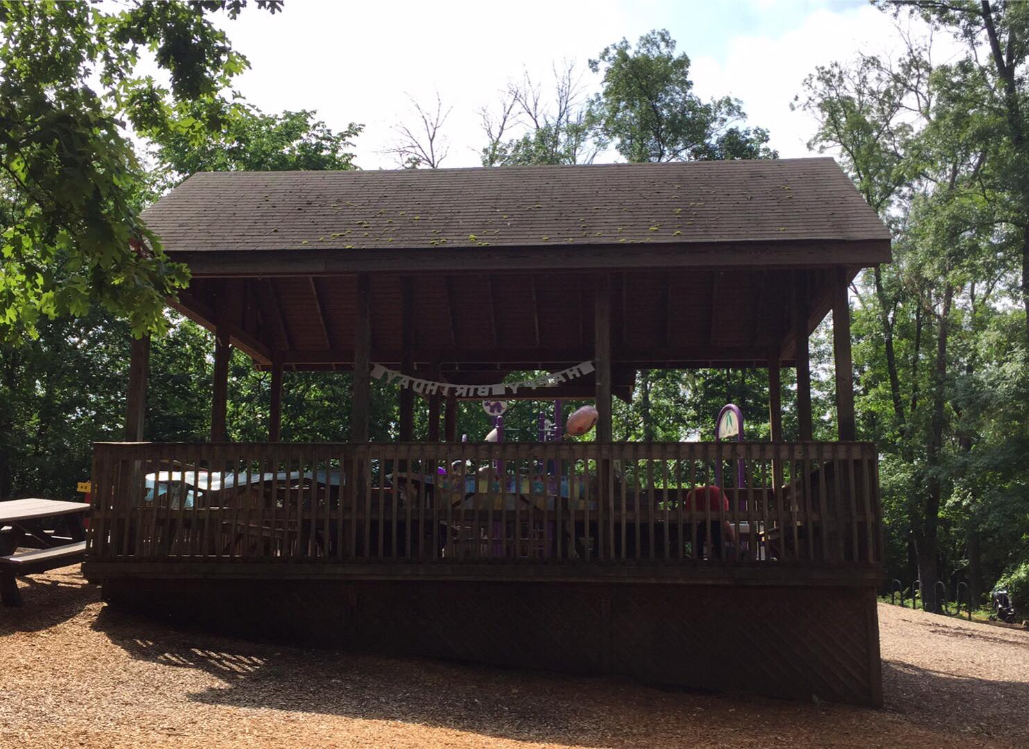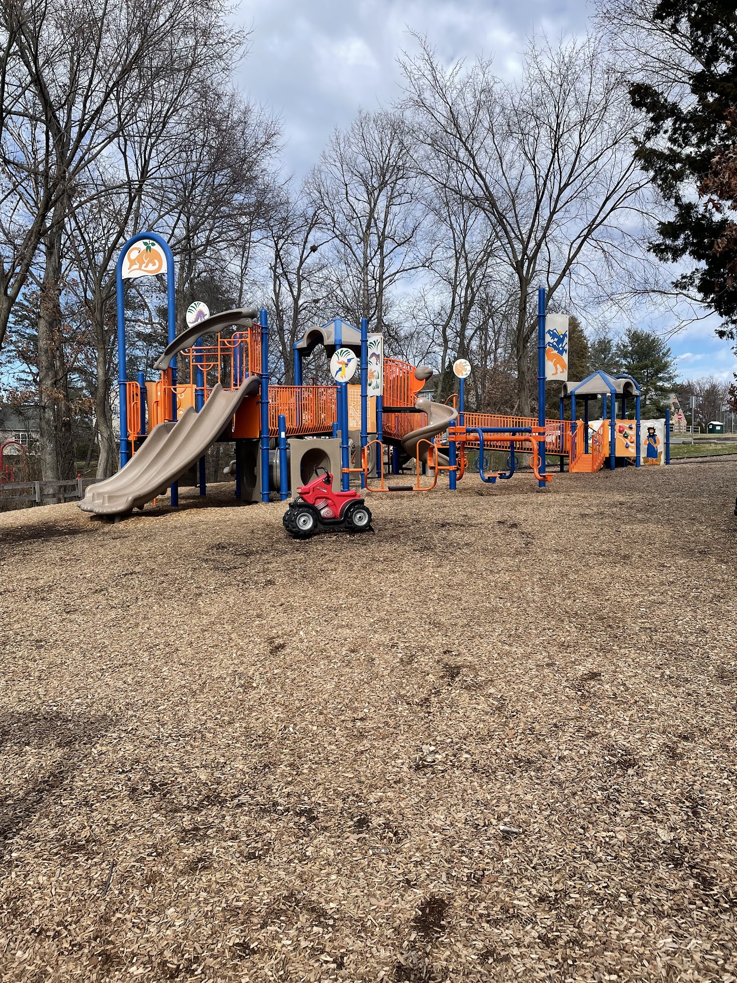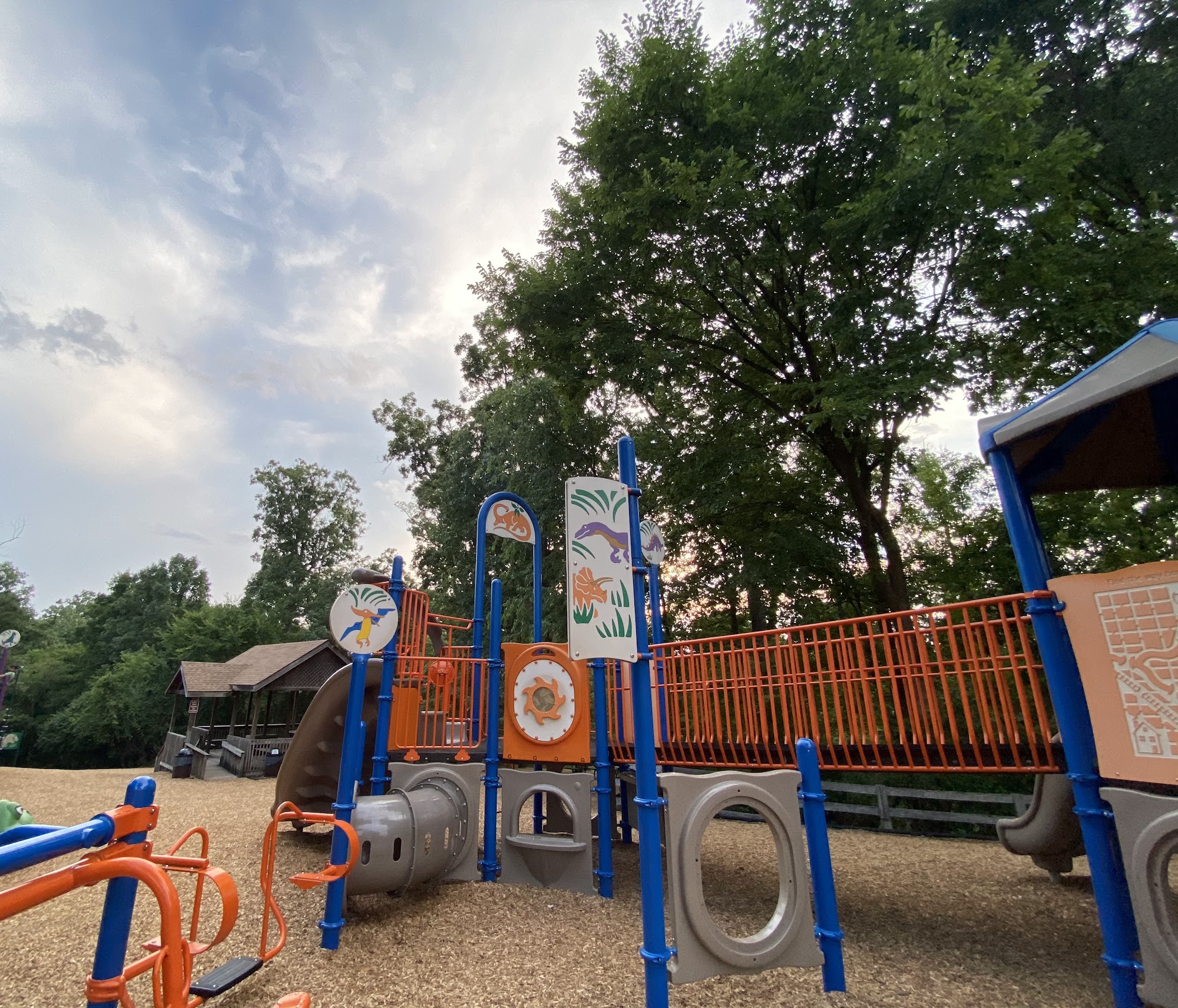 4 playgrounds for all ages. Also has bathrooms and a nature path