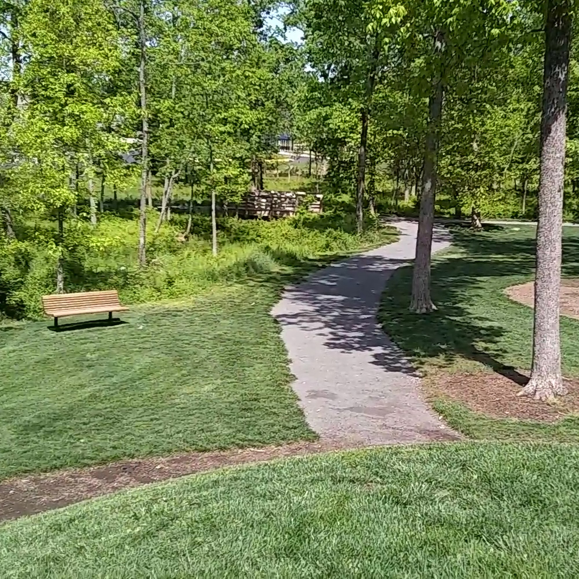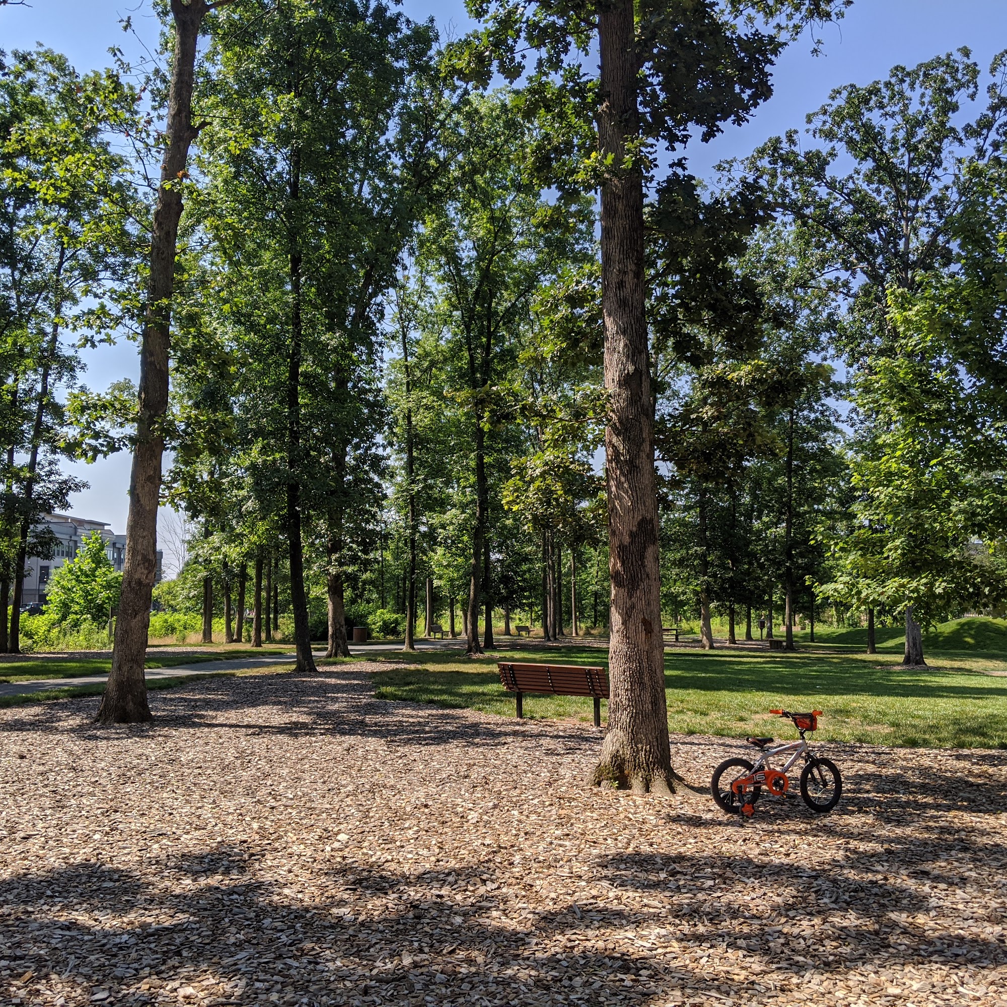 This is a great park! Nice wide walking trails through the trees and grass, as well as park equipment for kids to play on. It is dog friendly with trash cans and doggie bags, and it is in a nice location with parking along the perimeter.