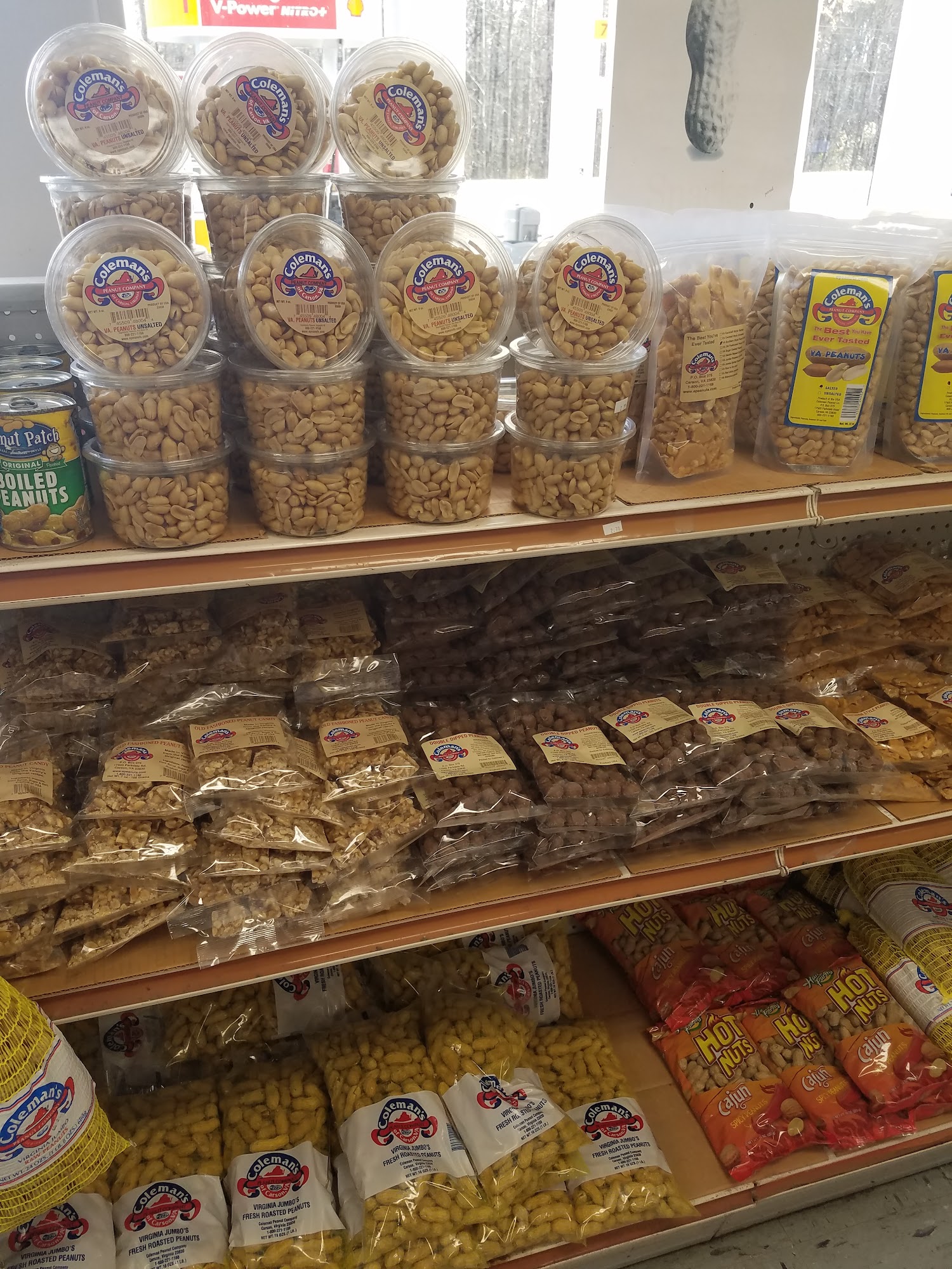 Coleman's Peanut Company is a small peanut shop located at a gas station along Interstate 95. The business offers a selection of peanut products, including boiled and salted varieties. Customers have provided mixed reviews, with some praising the exceptional taste and quality of the peanuts, while others found the prices unclear and the overall experience only moderately satisfying. Despite the mixed feedback, the company seems to have a loyal following, with one customer regularly ordering large quantities to be shipped across the country. Overall, Coleman's Peanut Company appears to provide a convenient stop for peanut enthusiasts traveling along the highway.