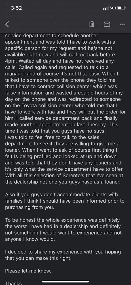 Nicole and her team went above and beyond helping us to decide the right model / trim and made entire process of buying the car seamless and enjoyable. Thank you KIA team!