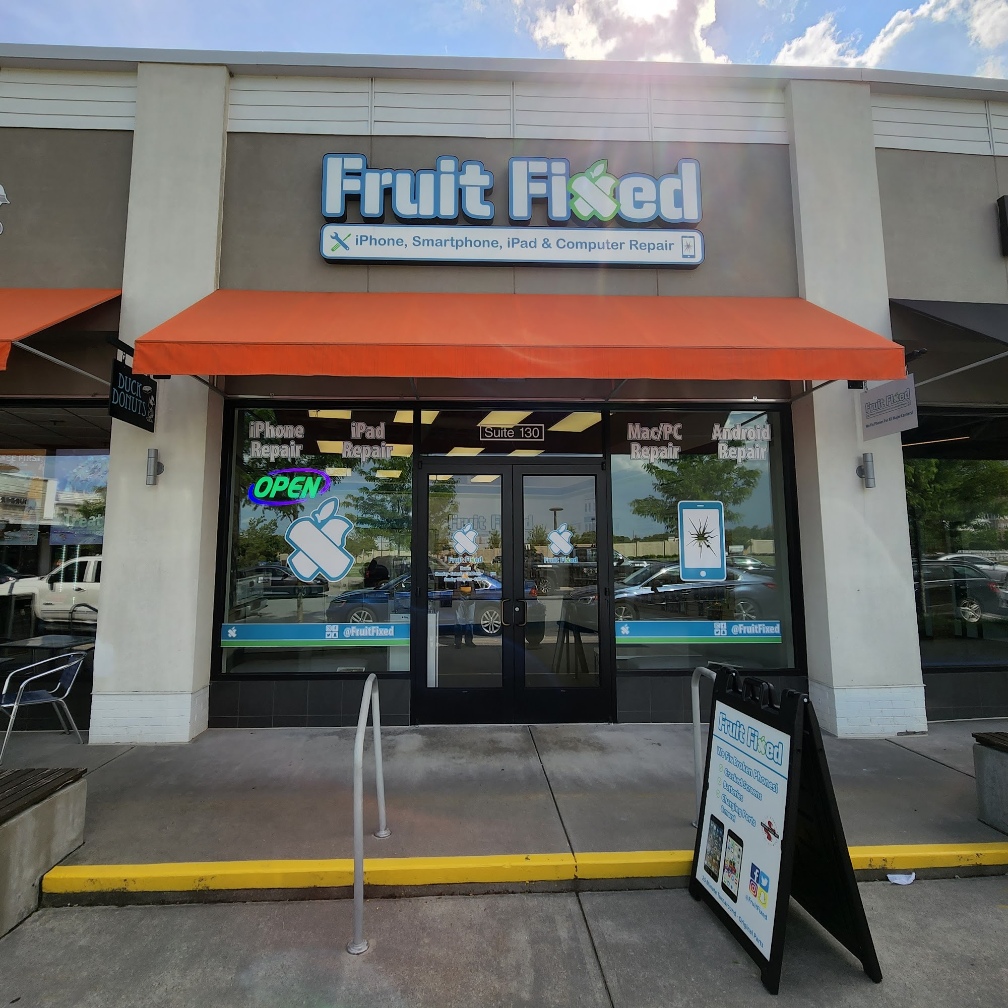 Fruit Fixed is Charlottesville's top choice for repair, sales, and support for iPhones, iPads, smartphones, Androids, tablets, Macs, and computers. We provide a free diagnostic on all repairs and back our work with a lifetime warranty covering parts and labor. Our expert technicians ensure fast, high-quality repairs with the best customer service in the industry. Located in the Shops at Stonefield, just a block from Regal Cinemas, we make sure broken devices don’t keep you disconnected for long. Let us repair your device and fix your day—stop by today for trusted service!