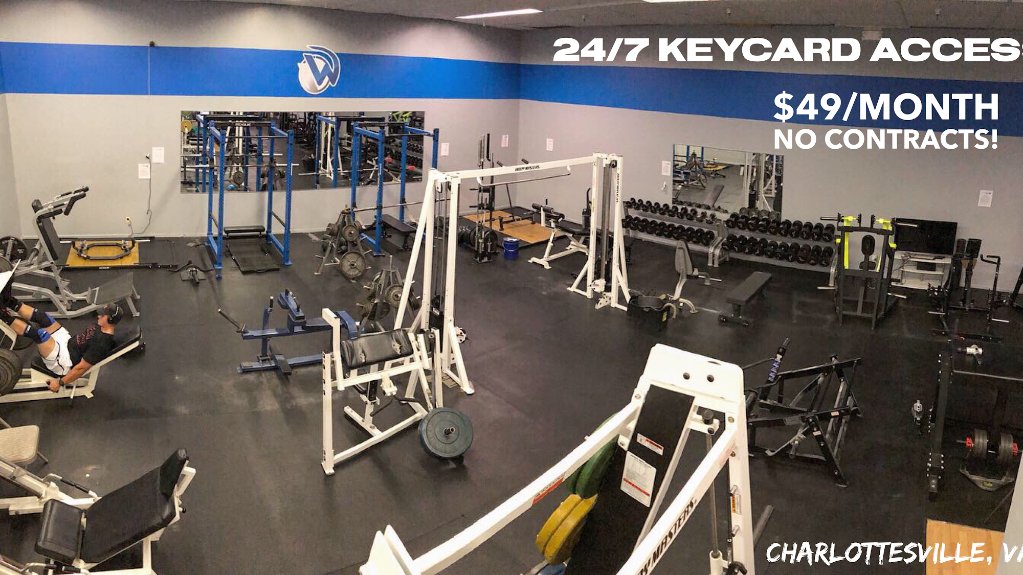 We are a locally owned and operated gym, committed to providing the best environment and equipment for our members. Whether you are new to the gym, or an experienced lifter, we have everything you need to become the best version of you! We also offer Personal Training & Small Group Training to maximize results and performance! We are open 24/7 for members but we are appointment only for Tours and Day Passes. To schedule a Gym Tour, Free Day Pass, or a Free Personal Training Consultation please call or text (434) 228-1708