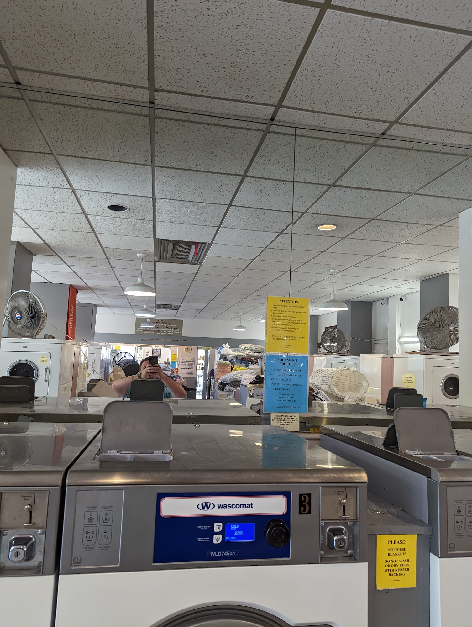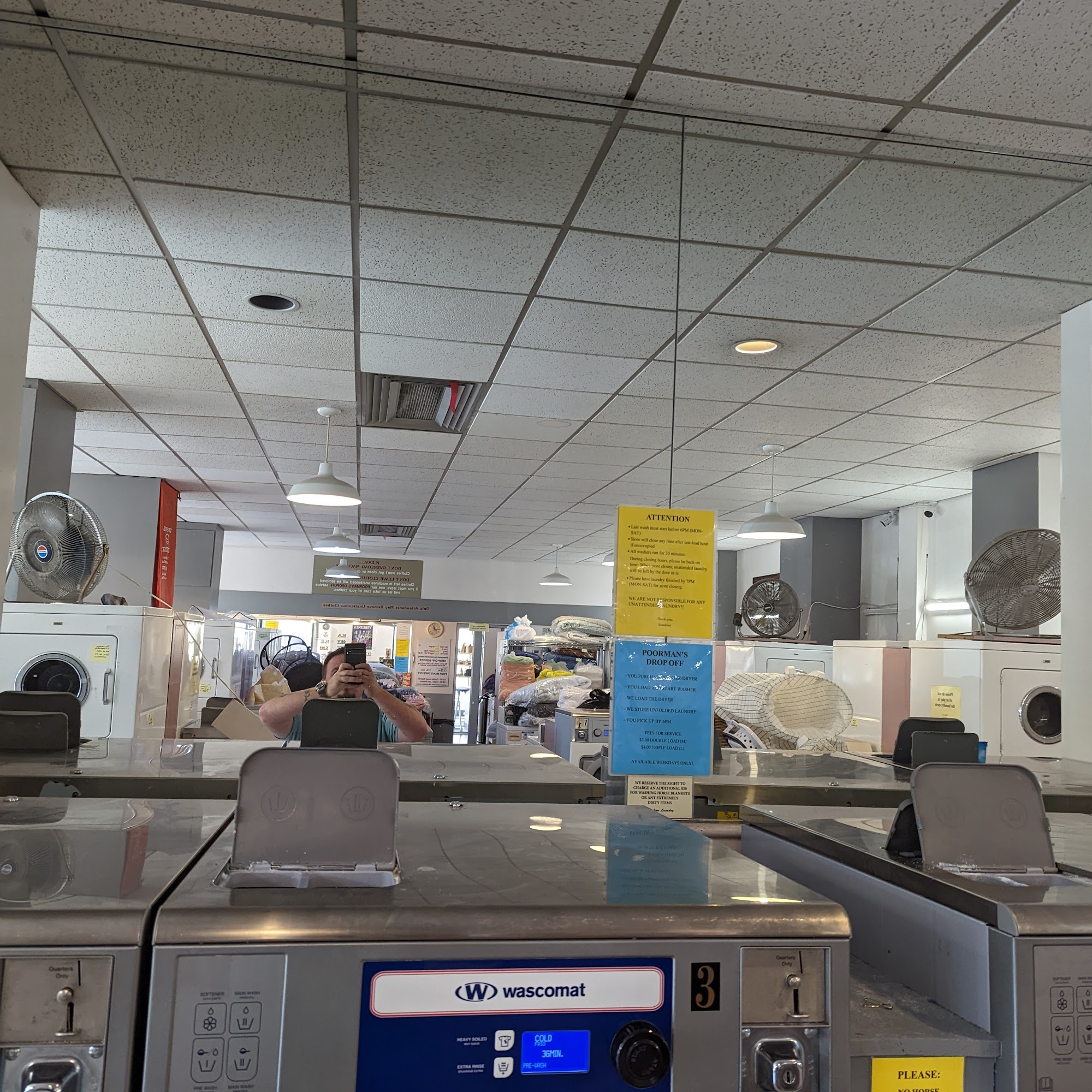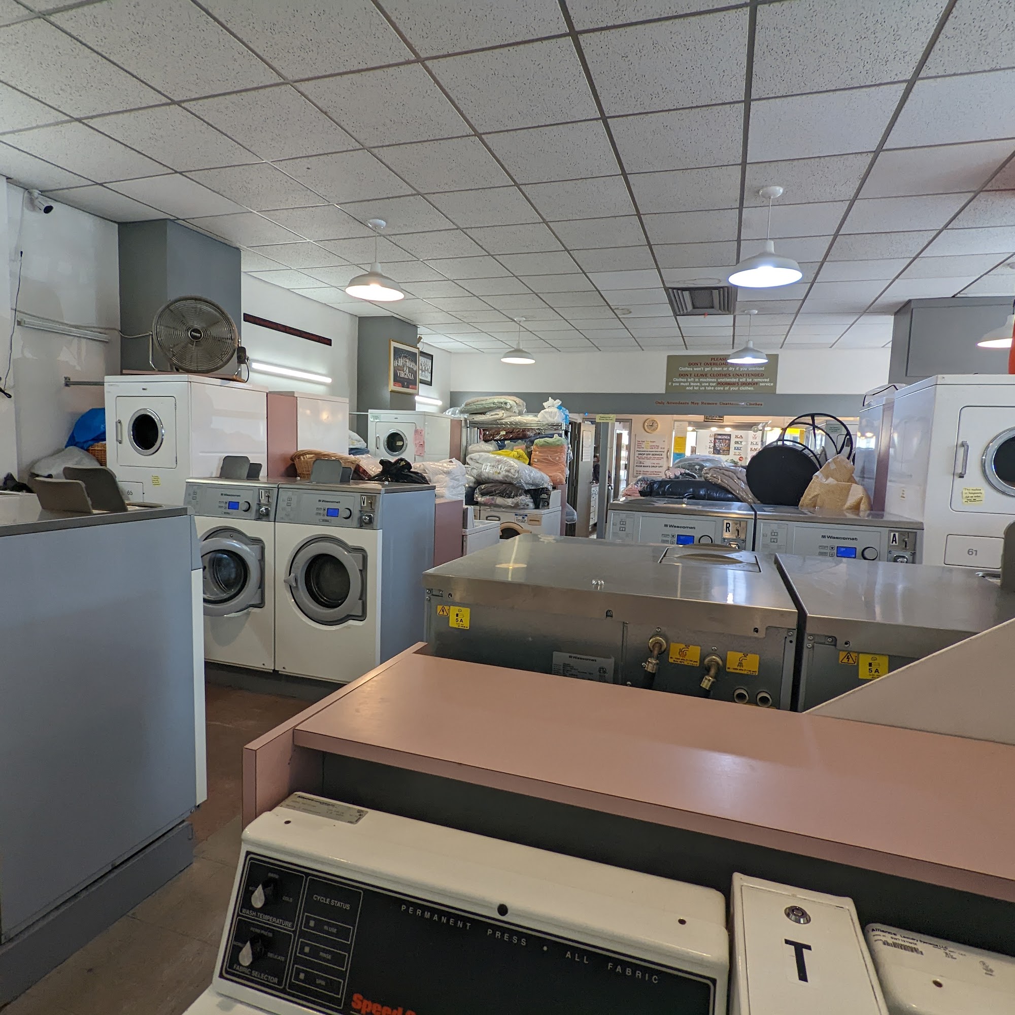 Sunshine Laundromat offers both self-service and convenient drop-off "fluff and fold" laundry services. The business has tons of industrial-sized washers and dryers, which all work fine, and a nice seating area with tables for waiting. The staff is described as lovely, amazing, very nice, and helpful, even carrying heavy bags to a customer's car. For the drop-off service, clothes are returned clean, smelling wonderful, and very well taken care of. The service includes washing, folding, sorting, and compressing the laundry. Items are returned beautifully, with pants and shirts on hangers and other clothing tightly bundled or neatly shrink-wrapped. The service is seen as a great time-saver, with reliable next-day turnaround. The cost is based on weight with a minimum charge. The laundromat is located close to the local university campus and area hotels.