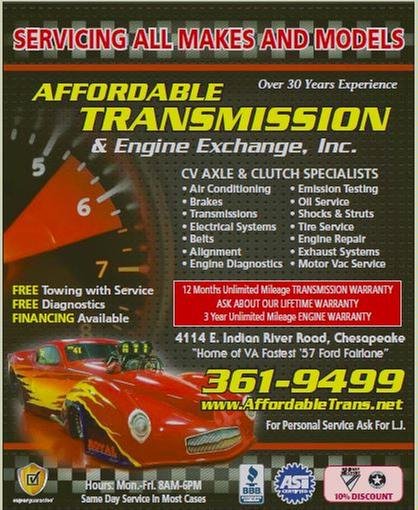 Affordable Transmission has been providing complete auto care service, repair, and maintenance with honesty and integrity to the Hampton Roads community for 25 years. They specialize in transmission and engine repair and replacements, and are a full-service facility with both indoor and outdoor bays, accommodating all makes, models, and sizes of cars and trucks. Customers have praised the amazing service they receive at Affordable Transmission. They feel heard, comfortable, and not taken advantage of, especially as women. The shop has been described as honest, reliable, and trustworthy, with knowledgeable staff who deliver on their promises. Customers appreciate the fair pricing and the high-quality work, which has resolved their vehicle issues without any problems. Affordable Transmission is highly recommended by those who have experienced their exceptional service over the years.
