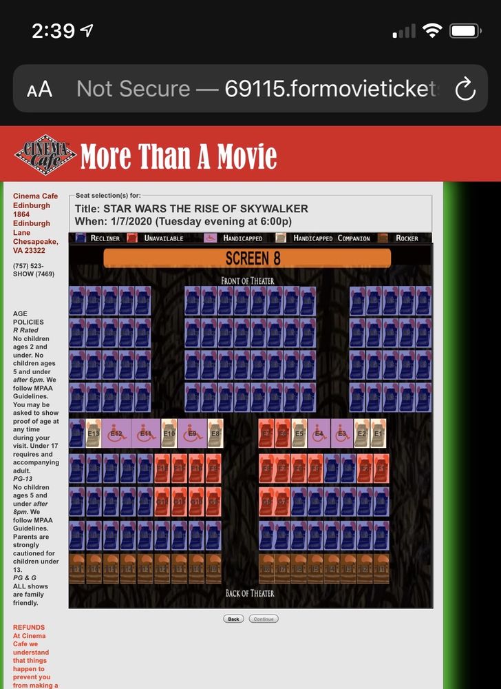 Great place to watch a movie. Great staff, great food and wine. The reclining chairs are incredible.