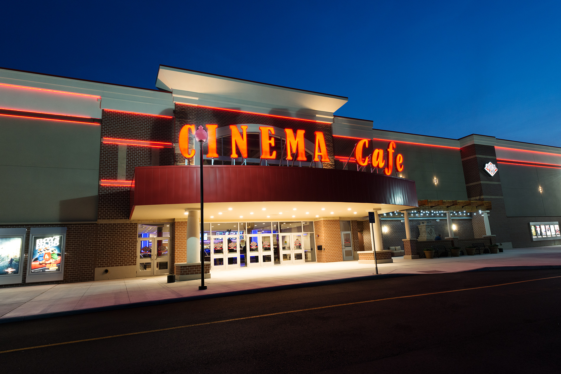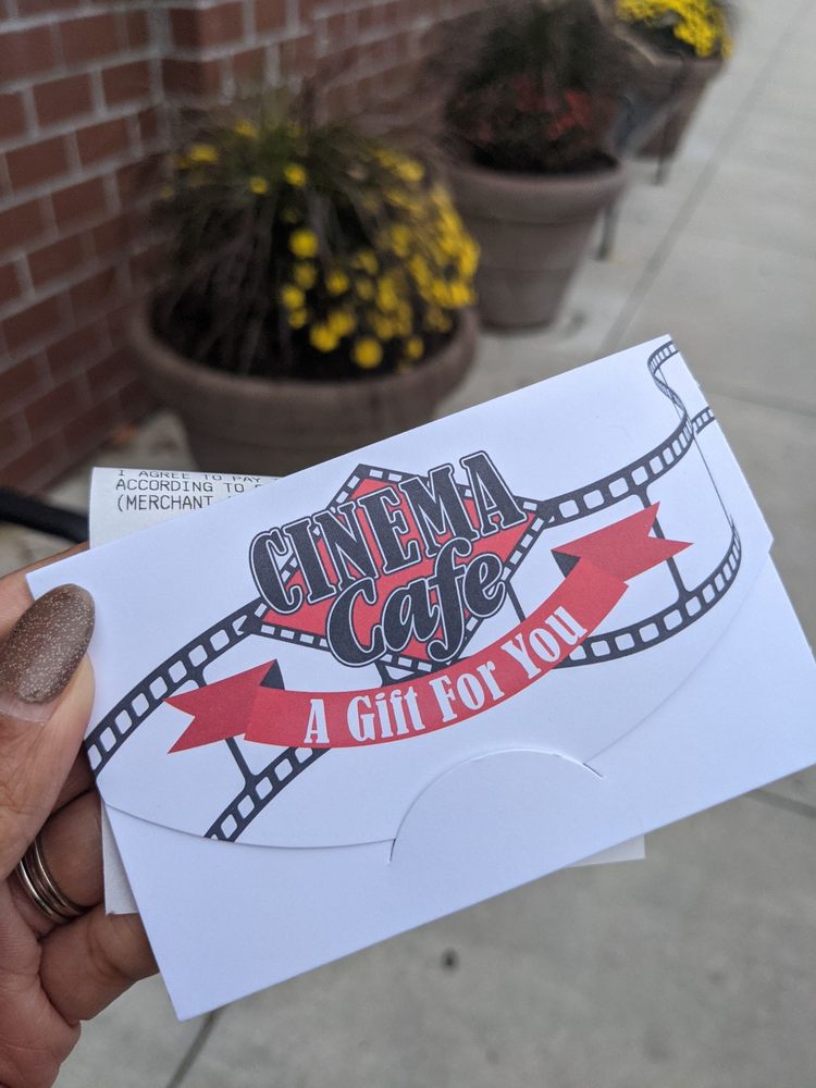Cinema Cafe is a one-stop restaurant and cinema experience offering quality food and beverages for the whole family. The theater has cozy and comfy recliner chairs. The staff is nice and the service is impeccable. Cinema Cafe offers different events, including sensory screenings and giveaways. The food is good and delicious, with a menu that consistently offers new items. It's a unique experience with great food, drinks, and a good movie experience, making it a great place to visit.