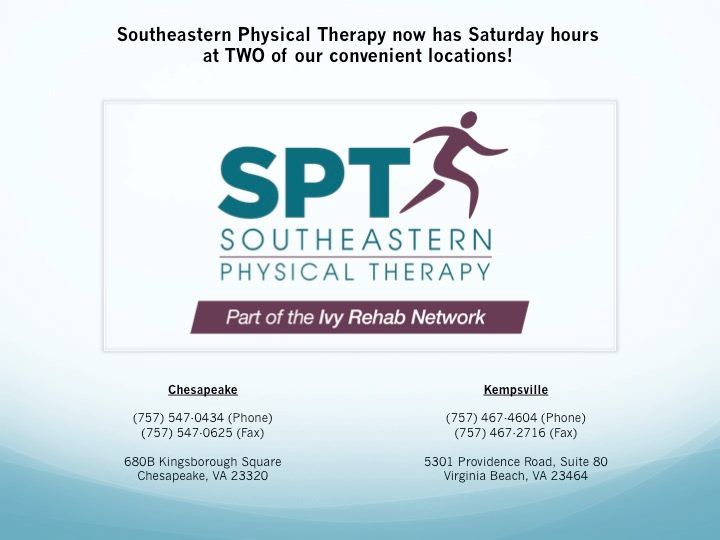 Ivy Rehab Physical Therapy in Chesapeake, located at 905 N. Battlefield Blvd., is highly praised for its professional, friendly, and supportive environment. The clinic offers personalized treatment plans to help patients recover from various injuries, including spinal fusion surgery, broken shoulders, back, neck, and knee issues. The staff is known for being helpful, knowledgeable, and respectful, always taking the time to understand each patient's needs and goals. Many patients appreciate the caring attitude of the therapists, who go out of their way to assist and motivate them through their recovery journey. The clinic stands out for its clean, organized space and a variety of resources, including aquatic physical therapy in a private pool, which is especially beneficial for those who find land-based therapy difficult. Patients feel valued and supported, often remarking on the team’s dedication to their individual progress. Overall, Ivy Rehab is recognized as a place where patients can achieve their recovery goals in a positive, encouraging environment with a team that truly listens and cares.