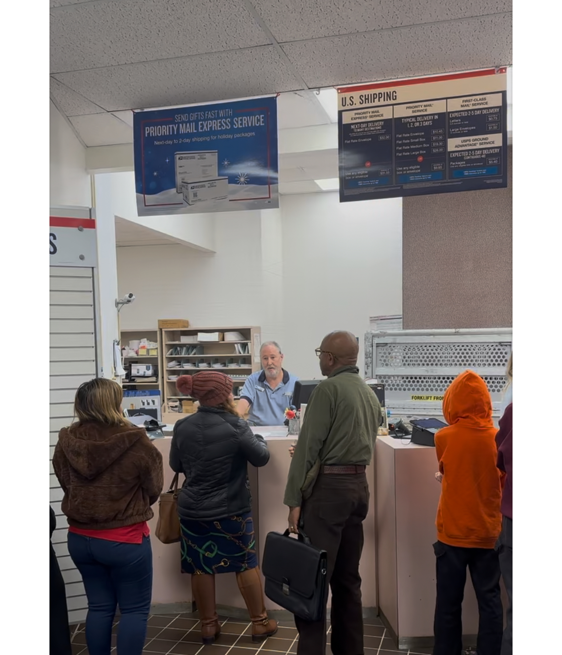 Beautiful postal service office! Clean, well stocked, smells great. Workers are polite and patient. We enjoyed our experience here.