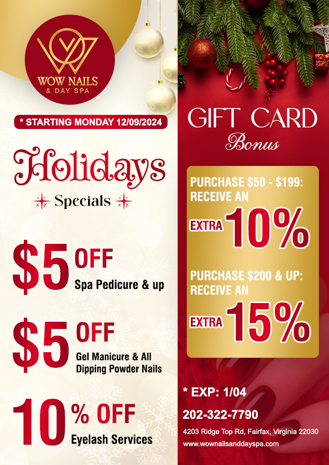 WOW Nails & Day Spa Fairfax is a nail salon and day spa at 4203 Ridge Top Rd, Fairfax, VA 22030 We bring you a New Brand of salon, a uniquely vibrant and relaxed environment with a modern luxurious feel back to our industry. We have an exclusive vision to recognize and re-establish what the industry has been lacking for many years. Our priority is to make our clients feel pampered and relaxed while getting beautified here at our salon. We will maintain our progressiveness and edginess by creating the latest trends and offering an unforgettable experience throughout your stay with us. You belong here, you belong in luxury, you deserve pampering and excellence.