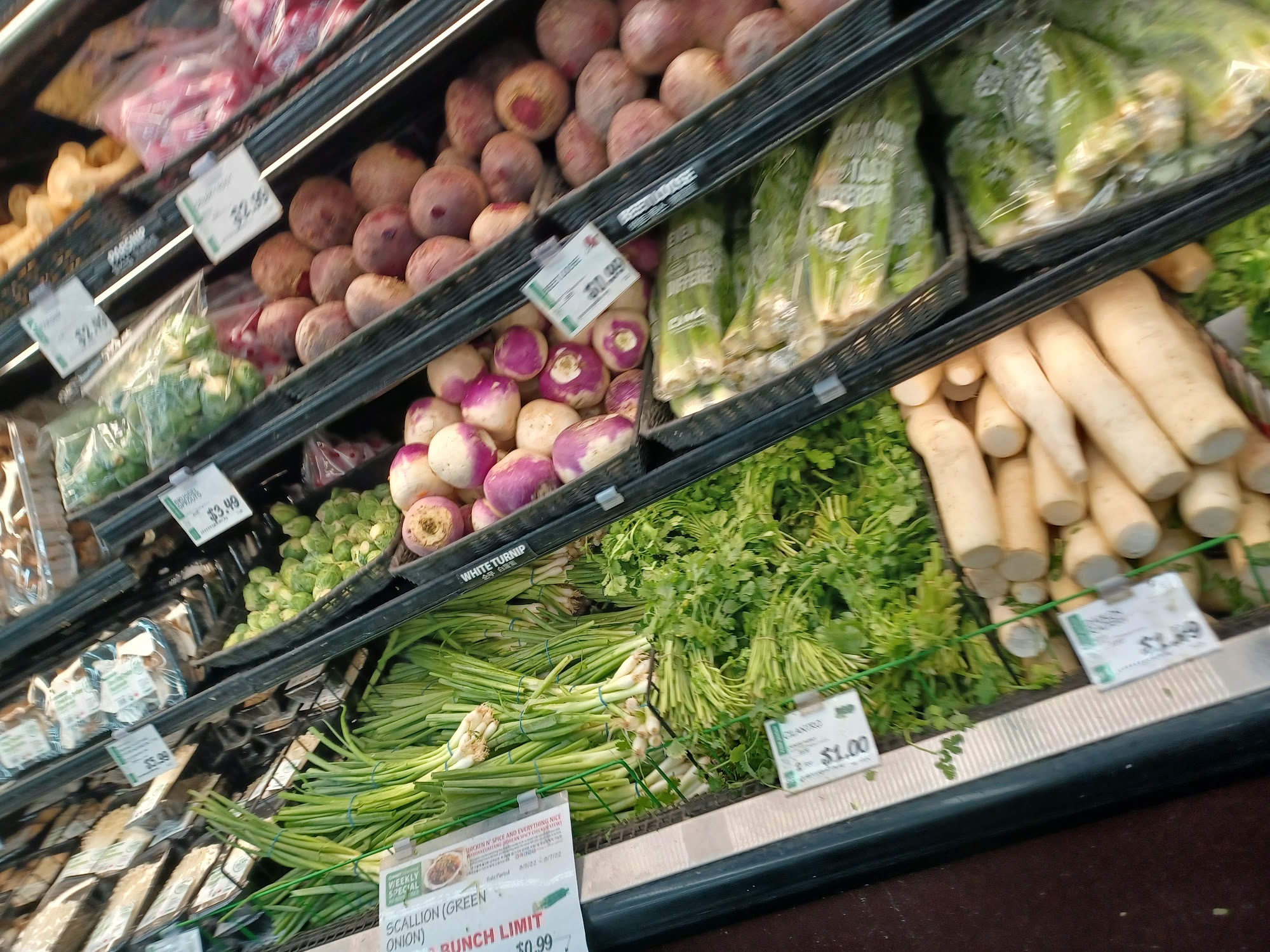 Very neatly organized store. I loved the fresh vegetable section, the variety of mushrooms fascinated me. The staff was polite and friendly. There is also a restaurant inside the store that you can purchase and sit there to eat. Lot's of options, will be going back!