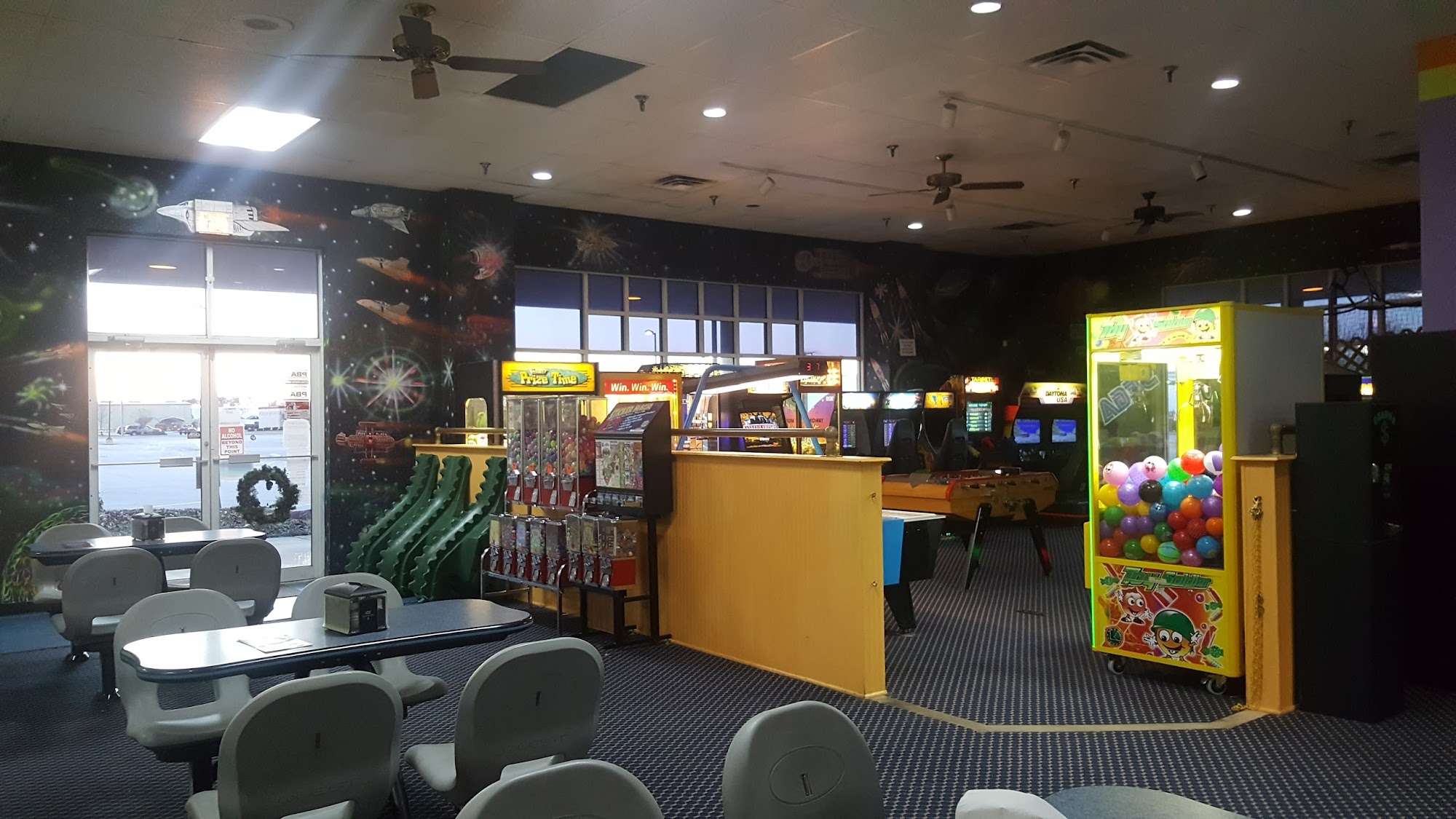 Nice bowling alley! Very clean and lots of fun. The lanes were very nice with large selection of house balls! There is a restaurant with food and alcoholic beverages. Very fair pricing!!!
