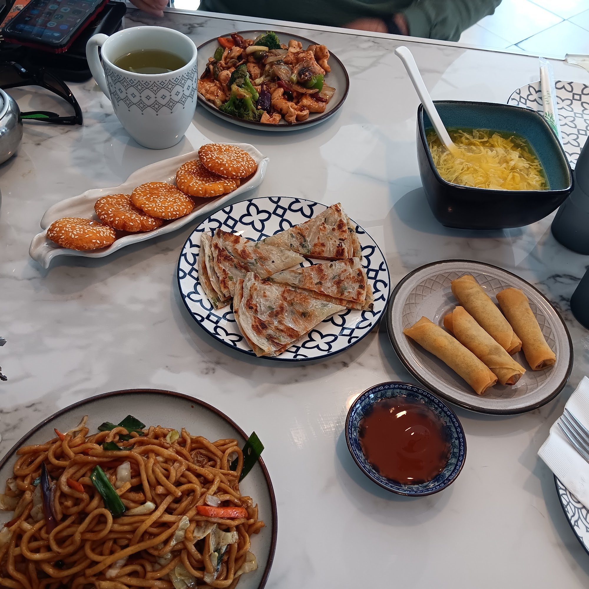 Scallion pancakes and chicken lo mien were amazing!