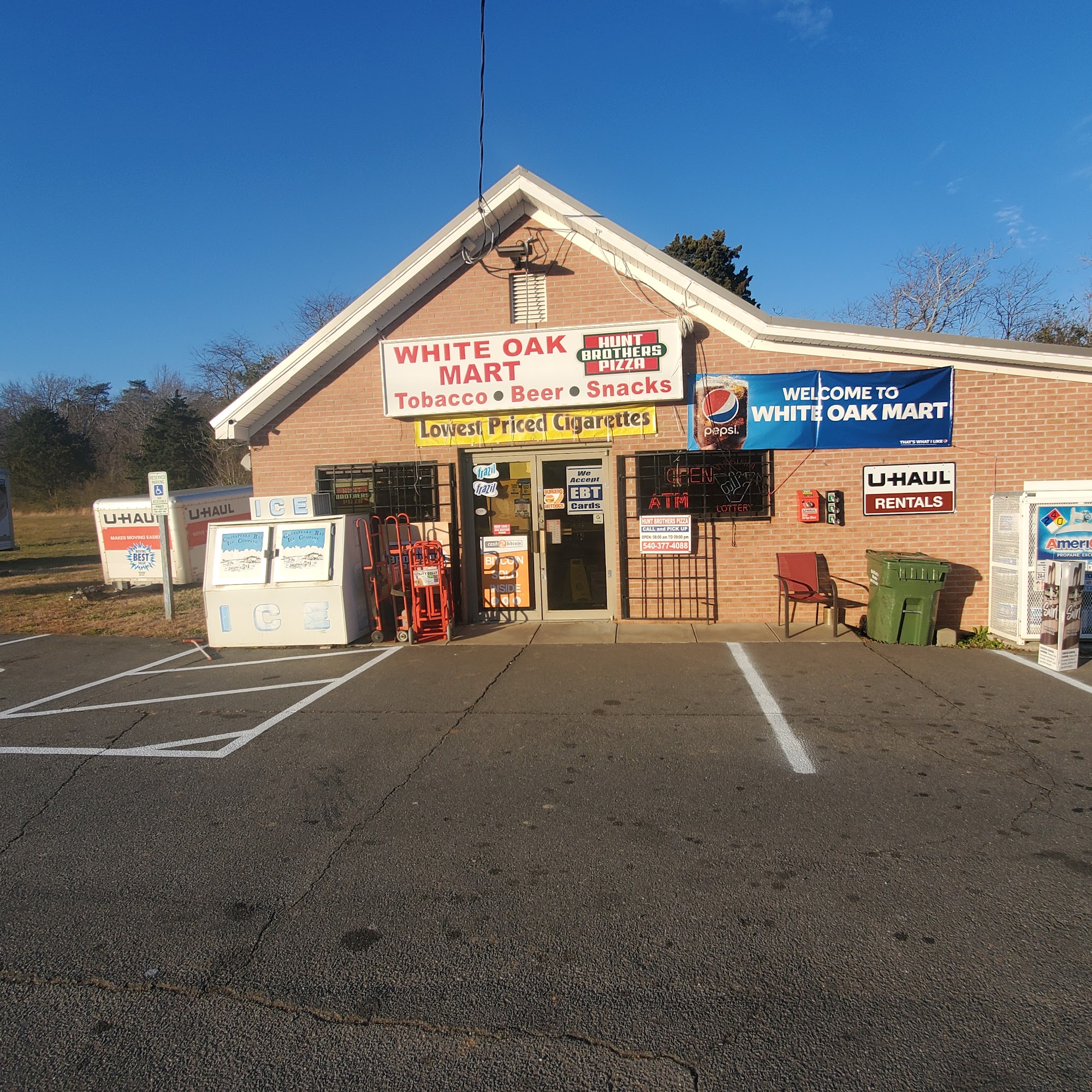 Dear white oak community, Thank you for the love and support. We are a home town convenience store located next on 218/white oak road. We have a Variety of different items sold in our store such as slushies, pizza, all types of tobacco products and so much more. check out our Facebook pages for updates on sales and events. We happily announce that we having U-Haul rental facility now available at White Oak Mart. Moreover, We just started all fishing supply and LIVE BAIT (NIGHT CRAWLERS) and also we started HOT BOIL PEANUTS. Please visit and enjoy !! Please suggest as well so try our best !! Thank you.