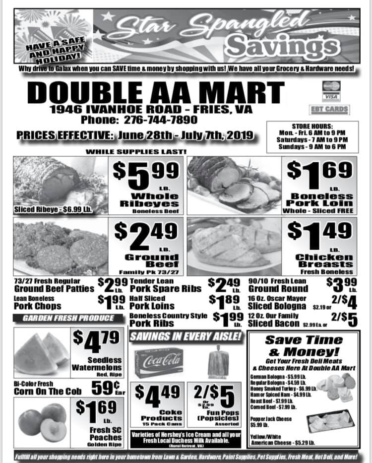 Double AA Mart LLC is a great little store and an amazing little gem in Fries, VA. It has a little bit of everything you could ever need for daily use, including fruits, meats and vegetables, dairy products, gas, diesel, hardware, and beer. The fresh meat is of great quality, better than any grocery store, with excellent prices and a good variety. The people who work there are really kind, friendly, and happy to help. They actually have a cashier. There's a lot more to this store than you would think, with nothing it doesn't have.