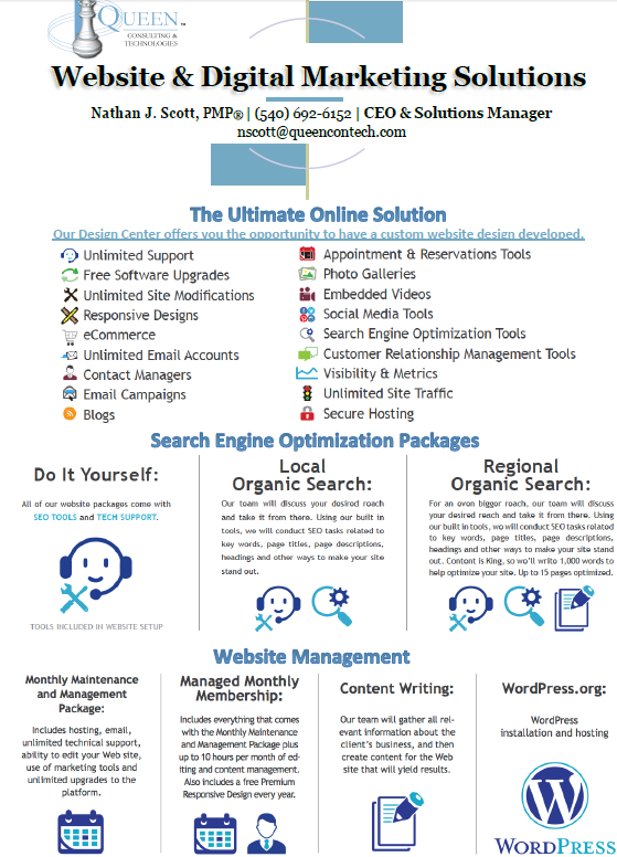 For companies in the Alexandria and D.C. area, you can add a new edge to your game. Queen Consulting and Technologies helps you press your advantage with a solid strategy for IT security and management. IT expert, Nathan Scott, stays fast and light with his support, committed to consistency and service you can count on.