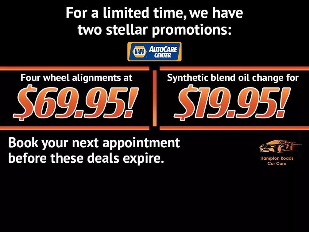 Hampton Roads Car Care is an auto repair shop offering preventative maintenance and general repair services, including oil changes, brake repair, wheel alignments, and Virginia state inspections. The business is an ASE certified and Repair Pal certified NAPA AutoCare Center, providing work covered by a nationwide warranty. Customer service from the staff, particularly the front desk, is frequently described as awesome, spot on, professional, and appreciatively proactive with reminders. Reviews highlight honest, upfront communication and a team passionate about excellent, top-notch service. Many customers are very happy with efficient, same-day repairs and return for repeated service. However, some experiences note limitations in diagnostic capabilities for complex issues, which may require a dealership visit. Communication during the vehicle inspection process can sometimes be improved, as customers have felt they were not clearly offered immediate fixes for simple, itemized failures. While the staff is appreciated for attempting further diagnostics at no charge, not all problems are resolved, leaving a few customers dissatisfied with the outcome.