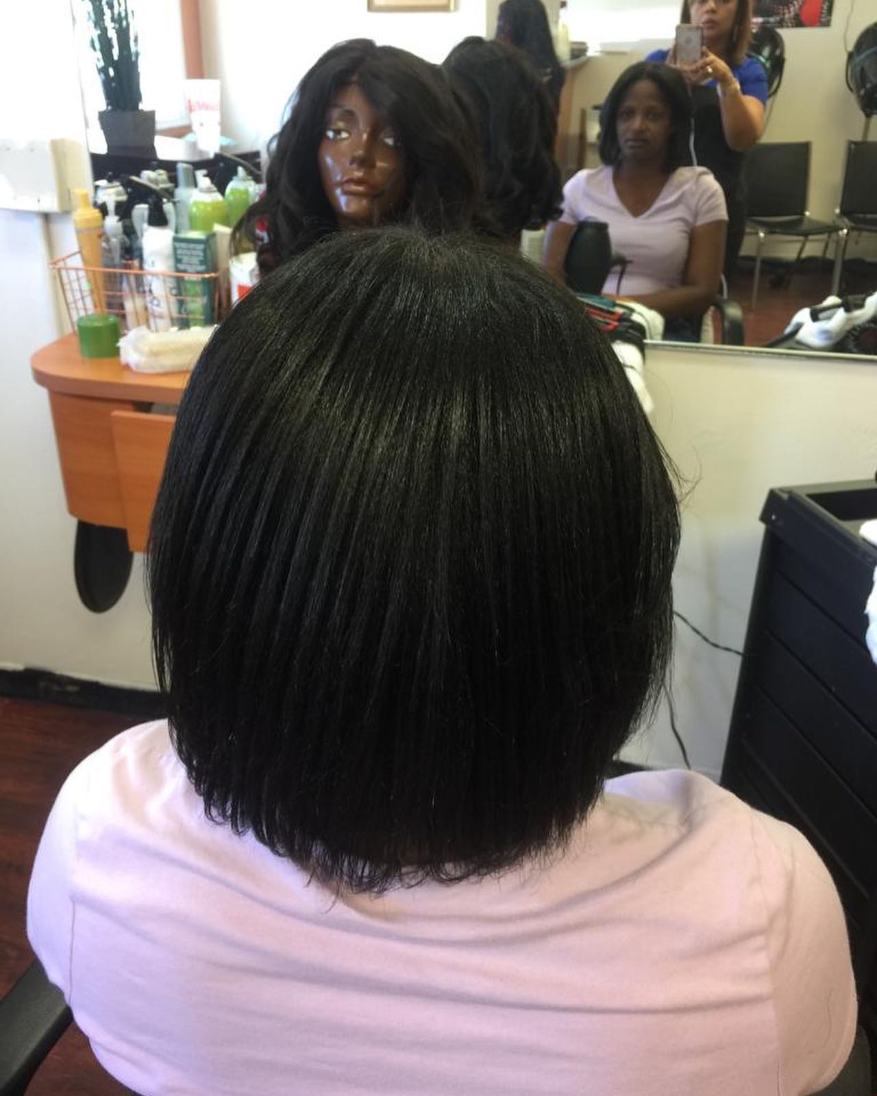 My hair is thick curly and dry and Evelyn does such a great job on it. I’m used to Dominican salons in NYC. She is the only one I trust to do my hair now. My hair looked so shiny and boneless. It lasted me weeks. 10/10