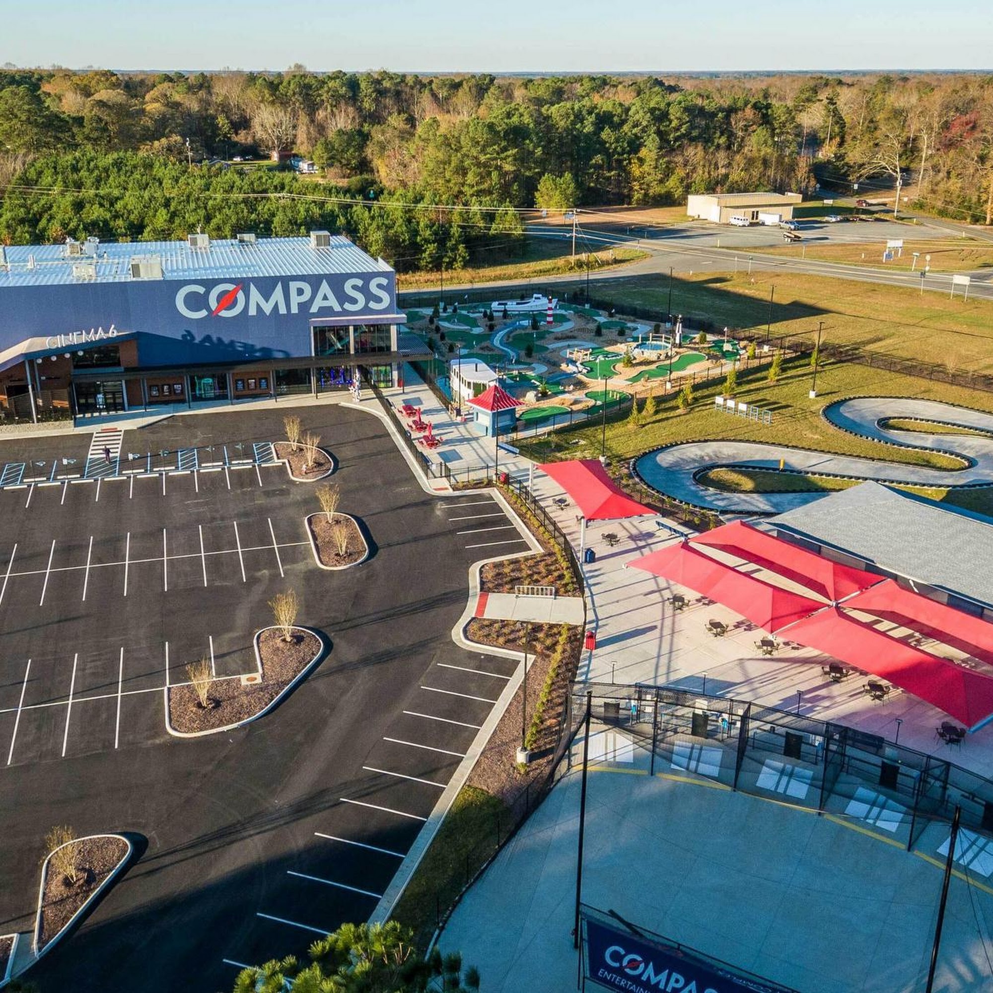 Compass Entertainment Complex is a fun and family-friendly destination located in the Northern Neck area of Virginia, especially in Irvington. It offers a variety of activities suitable for all ages, making it a great place to hang out and enjoy quality time. Visitors can relax in a nice theater that features immersive 3D movies, where even front row seats provide a captivating experience that feels as if one can reach out and touch the objects on the screen. The complex also has a large arcade, an obstacle course, batting cages, go-karts, and outdoor activities, including mini golf with water features and challenging surprises. The complex boasts a restaurant called Meridian, which provides a full menu, a sizable bar, and a buffet brunch with breakfast or seafood options, accompanied by live music. The staff at Meridian, including the manager, are professional and attentive, especially accommodating dietary restrictions and special events like birthday parties. Their excellent service was evident when they quickly handled a kitchen mix-up by offering a complimentary snack and delivering food directly to theater seats, turning a minor mistake into a positive experience. Compass is also a place where guests can enjoy games, different activities, and fun family time. The staff is friendly and available to help at any station, making every visit smooth and enjoyable. With easy parking and a welcoming atmosphere, Compass Entertainment Complex is a must-visit spot for family fun and entertainment in the area.