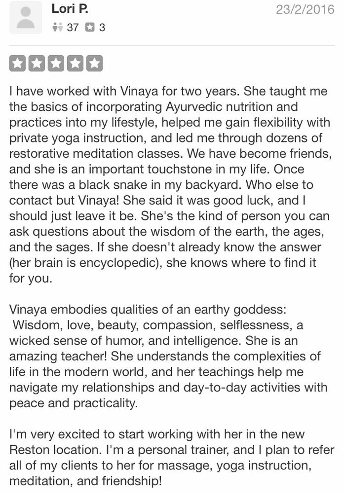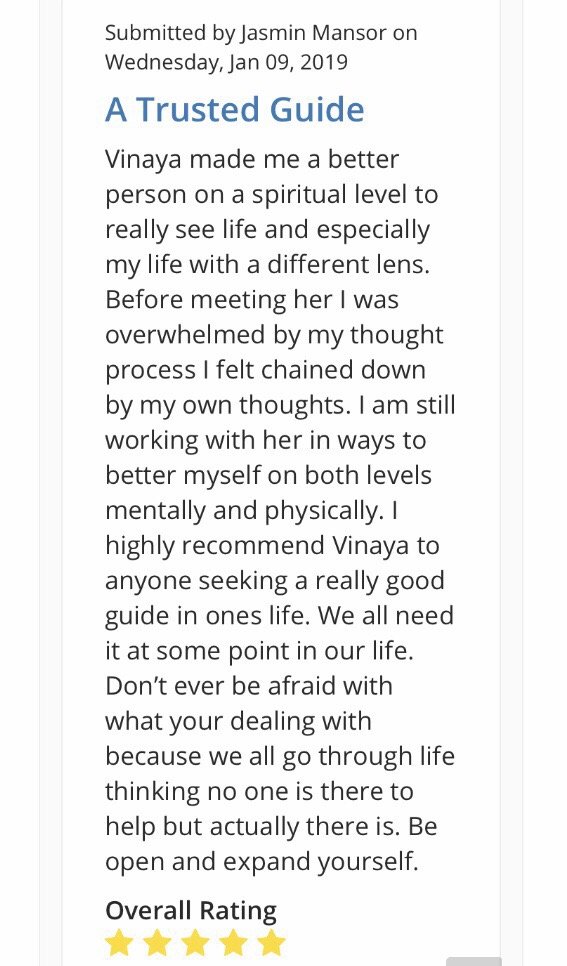 I have been working with Vinaya for over a year now. With her help, I have completely changed my life. I cannot recommend her enough!