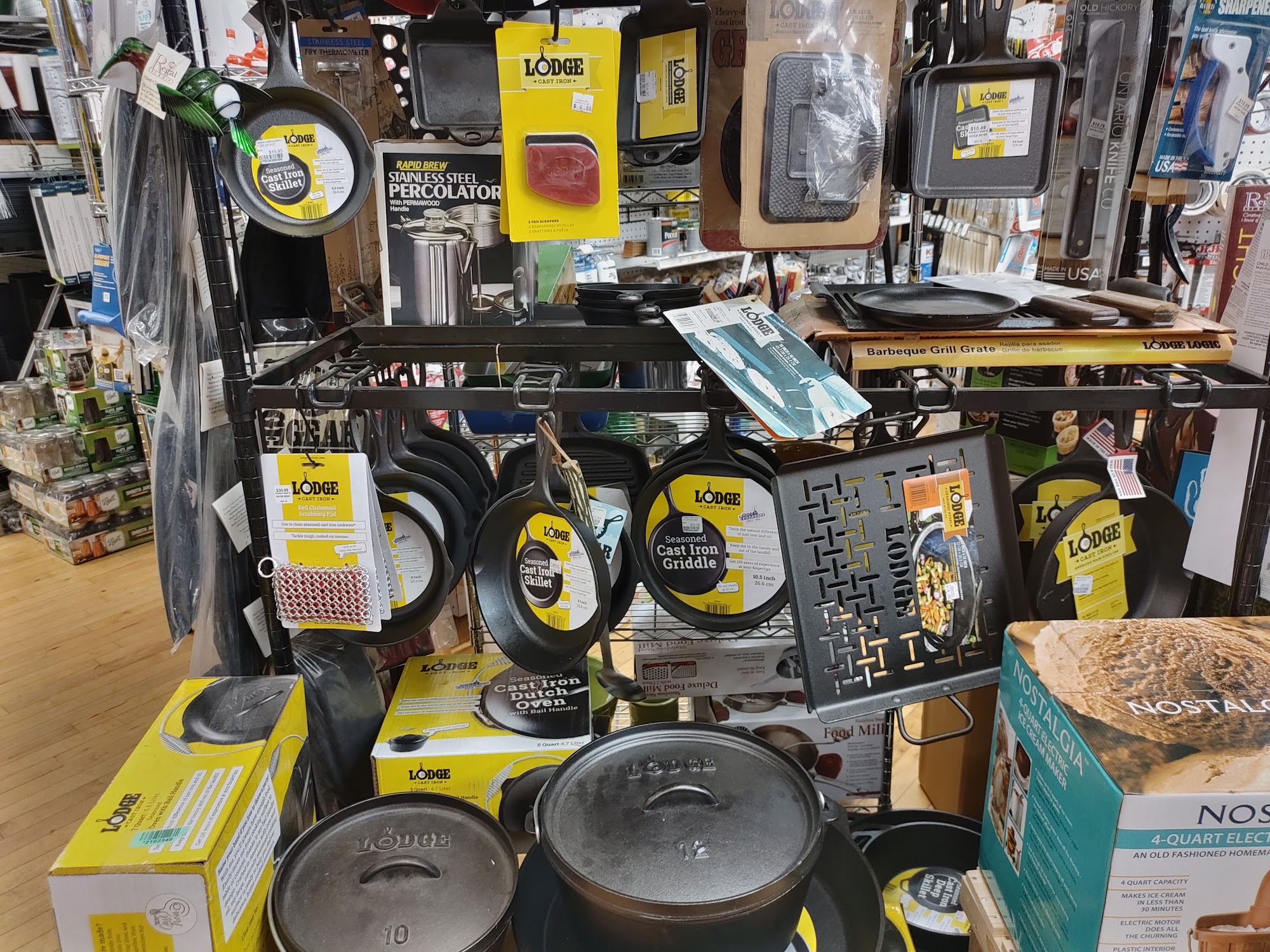 Funky, old fashioned hardware/seed store. Excellent prices and stock for bird seed, suet cakes, feed corn, peanuts. Amazing selection of Lodge cast iron products. We were there in the winter, so didn't see the plant selection, but we'll be back in the spring. Plus a bonus store cat!