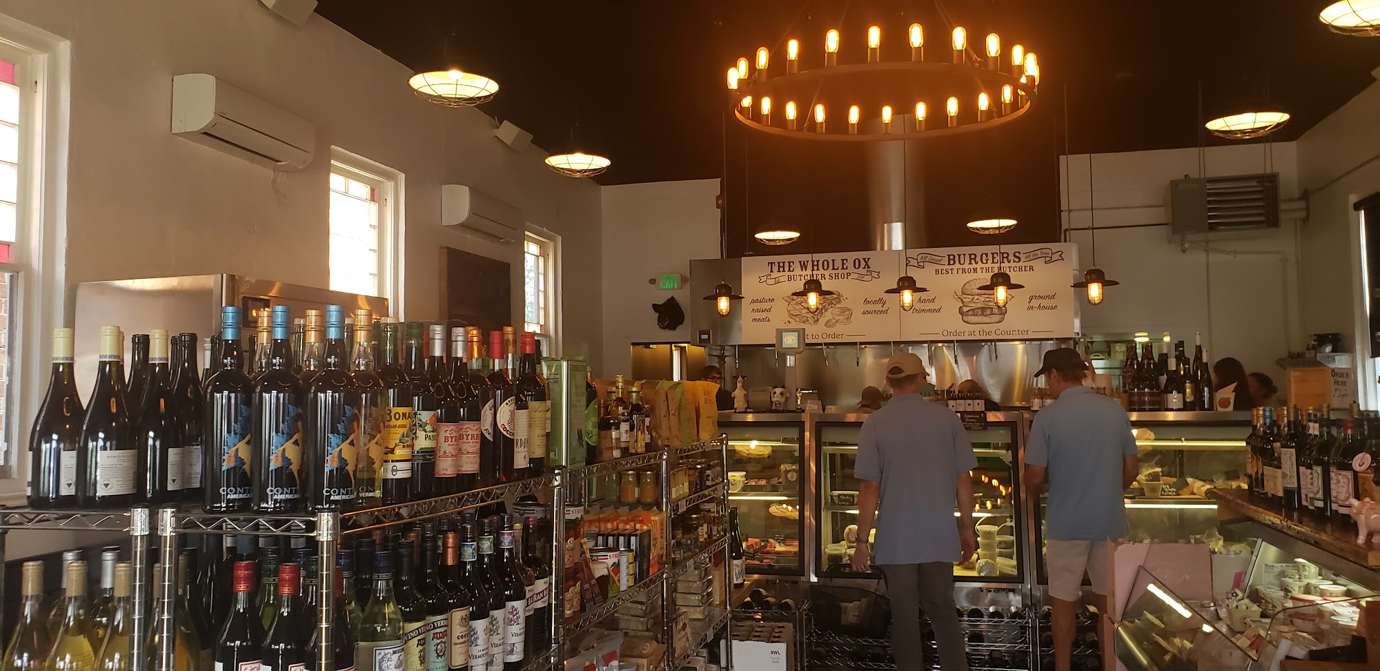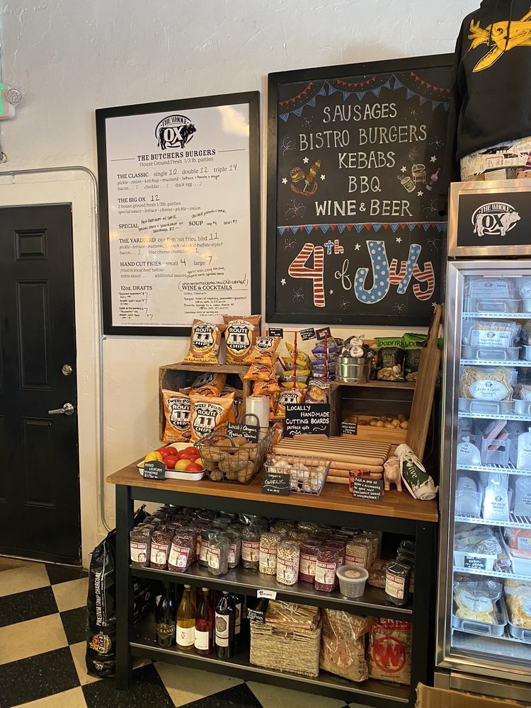 The Whole Ox is an amazing local butcher and a delicious stop. It has been the best for over ten years. The sourcing cannot be matched for steaks, chicken, and more. It offers fresh meats, vegetables, wine, and beer. The food is outstanding, with the best burger in all of Virginia. The fried chicken sandwich, grilled cheese, and curry chicken salad are thick, hearty, and delicious. The hospitality is unmatched. It is busy with locals and provides high quality stuff.