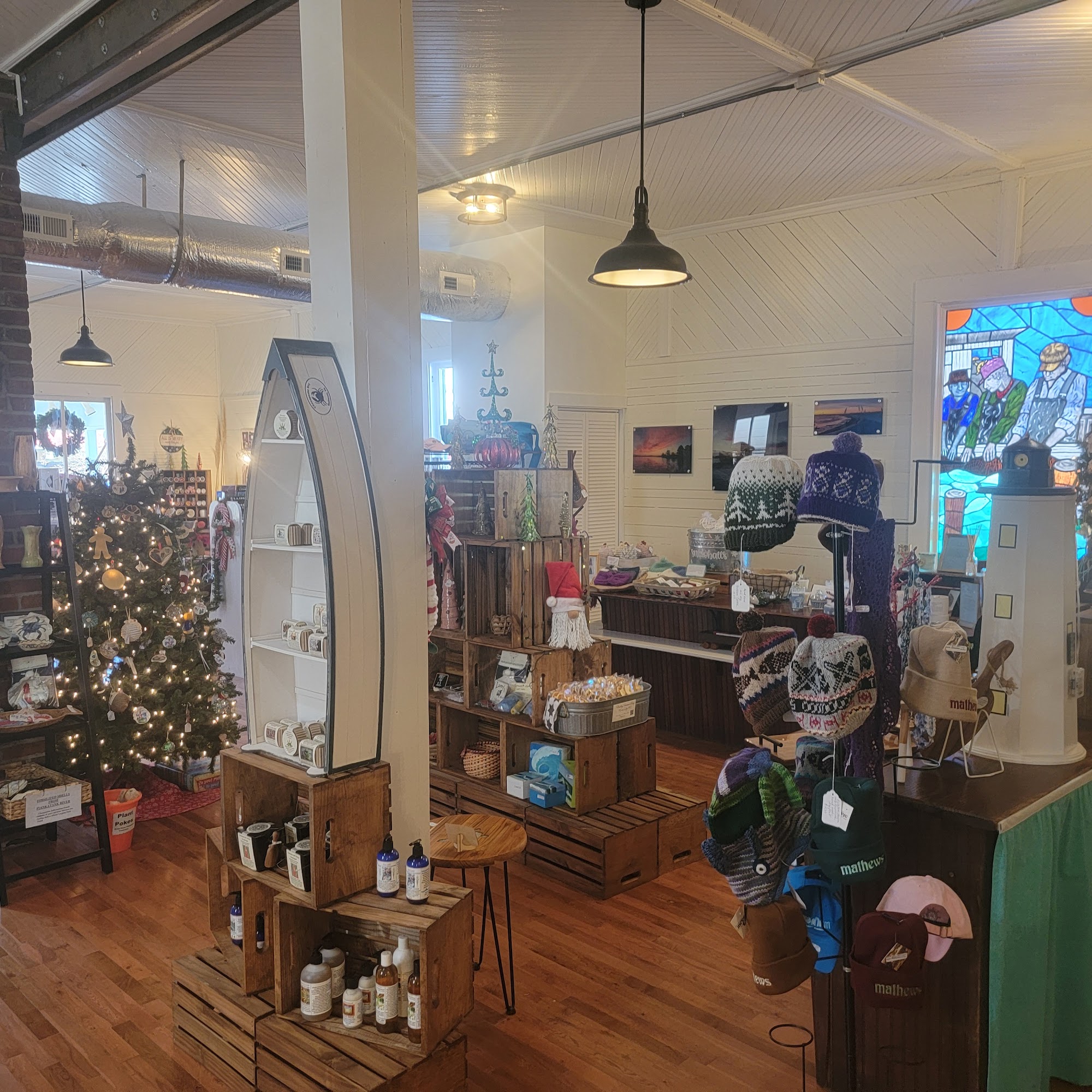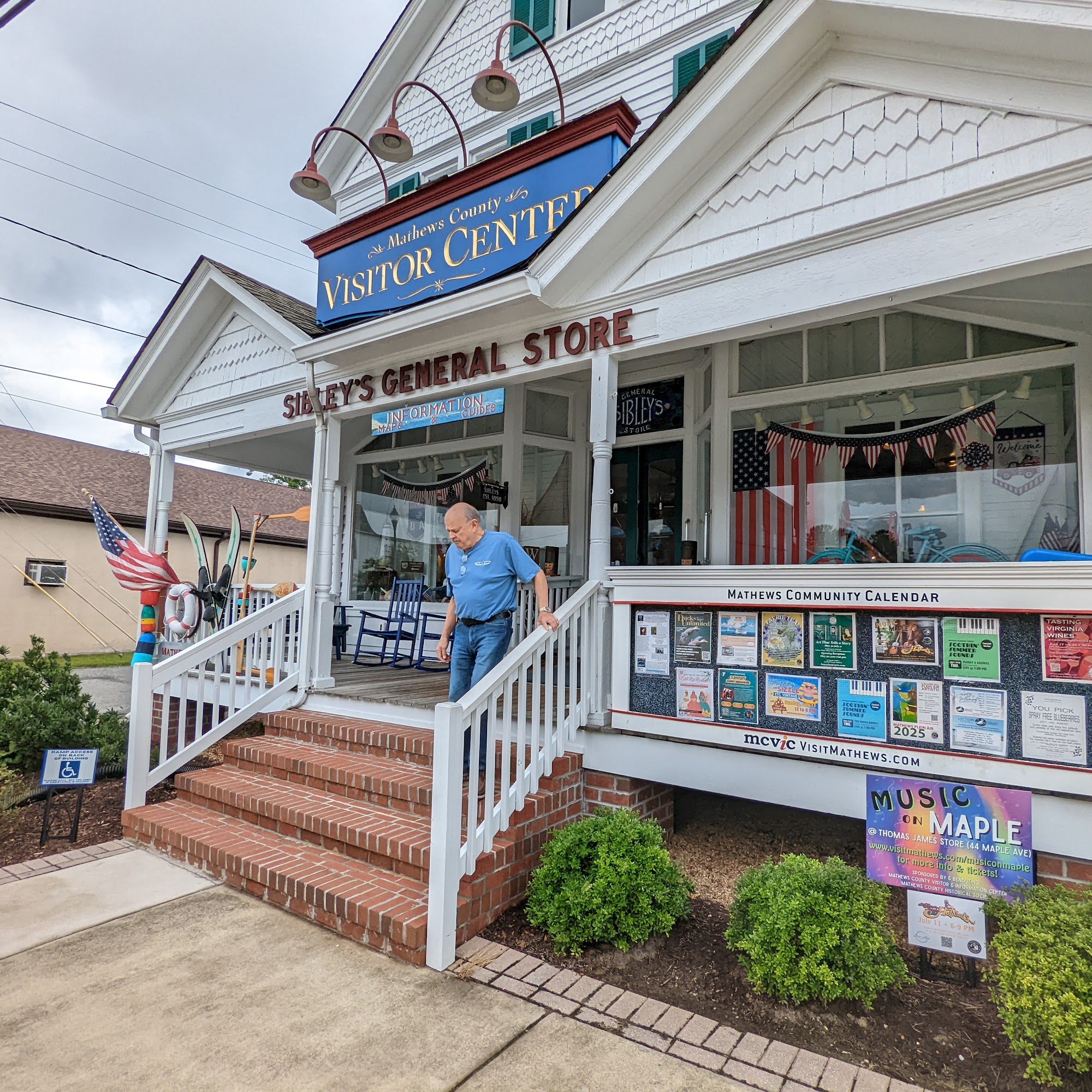 Mathews County's small town Visitor Center with area information and brochures, and a "made in Mathews" gift shop full of unique local crafts to take home! Stop by our unique center in the 'Ol Sibley's General Store and stay awhile on our front porch rocking chairs for views of downtown Main Street.