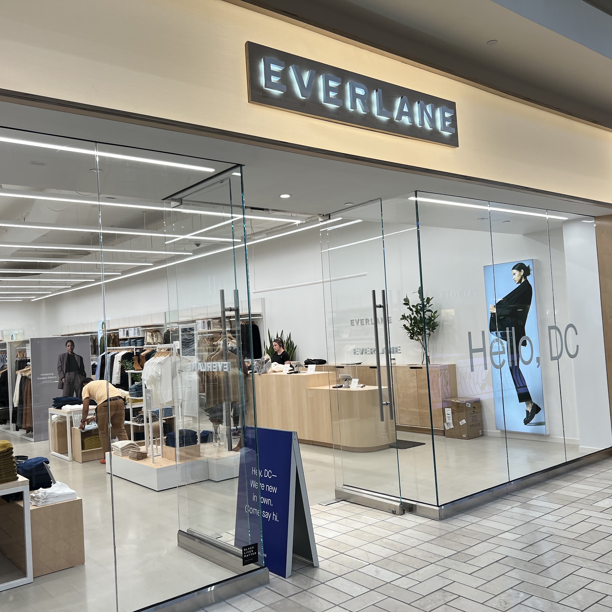 Nester at Everlane Tysons is the sweetest guy I've ever met in retail and literally could not have been more helpful when checking out. Jane was also fantastic and helped is get a changing room super quickly and managed lots of customers who all needed help efficiently and kindly.