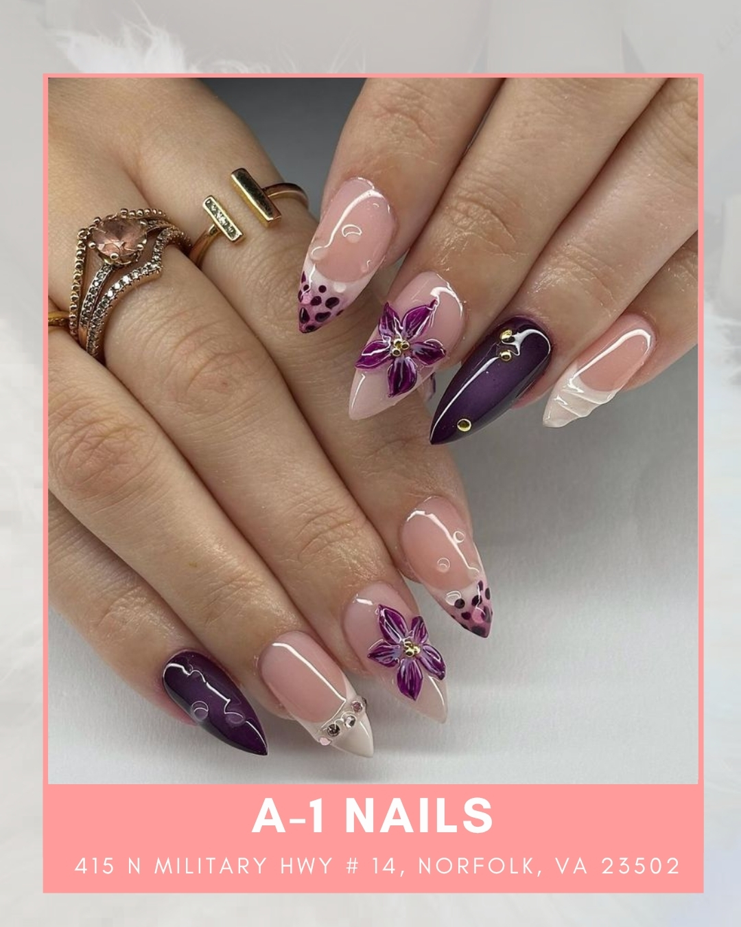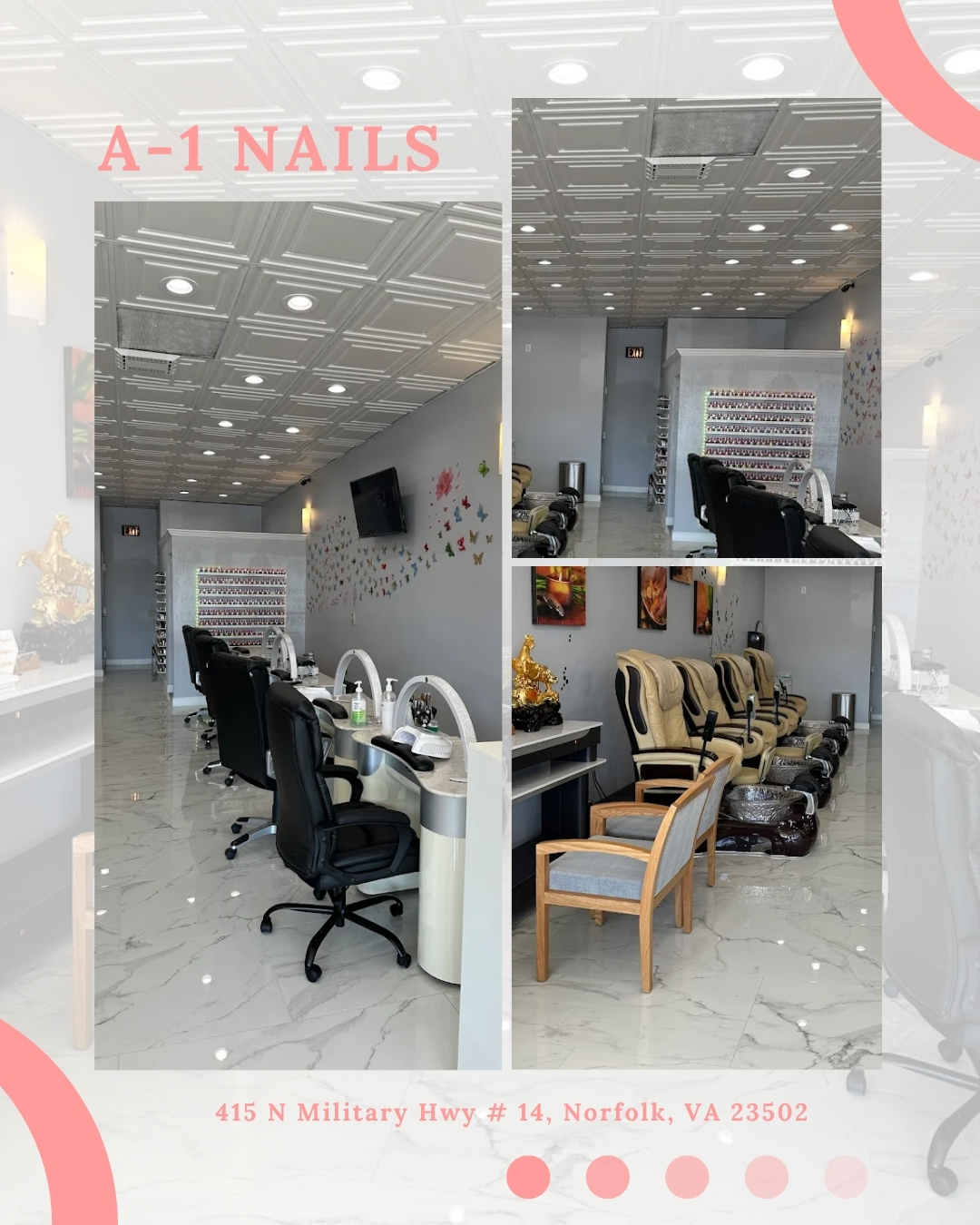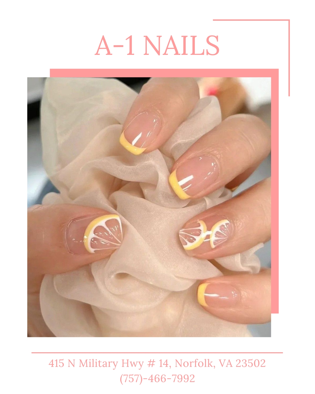 Welcome to A-1 Nails, Norfolk's premier destination for exceptional nail care services. Our experienced technicians provide a wide range of treatments, including manicures, pedicures, acrylic nails, and gel applications. We pride ourselves on maintaining the highest hygiene standards and offering affordable prices. Whether you're seeking intricate nail art designs or a relaxing spa pedicure package, A-1 Nails is committed to exceeding your expectations. Conveniently located in Norfolk, we welcome walk-in appointments and prioritize your satisfaction. Experience the best in nail care—book your appointment with A-1 Nails today!