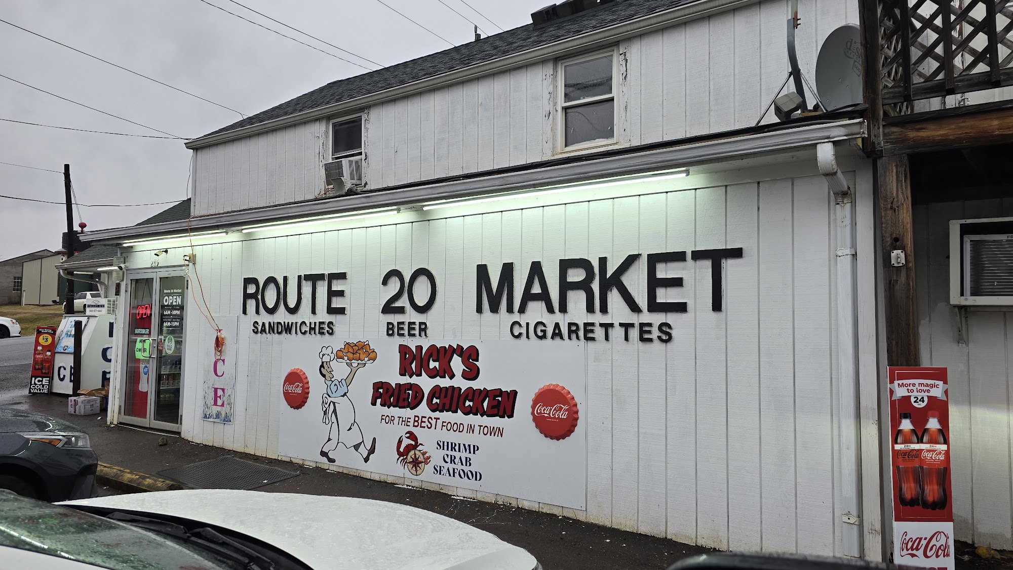Route 20 Market is the easy in and out place for small essentials, snacks, coffee and few supplies. Frequently stop here for the convenient stop and could be cheaper and cleaner. The food is fried chicken locally, best fried chicken, amazing breakfast sandwiches, potato wedges and great carry out meal when running late. Staff is friendly and helpful and atmosphere is.