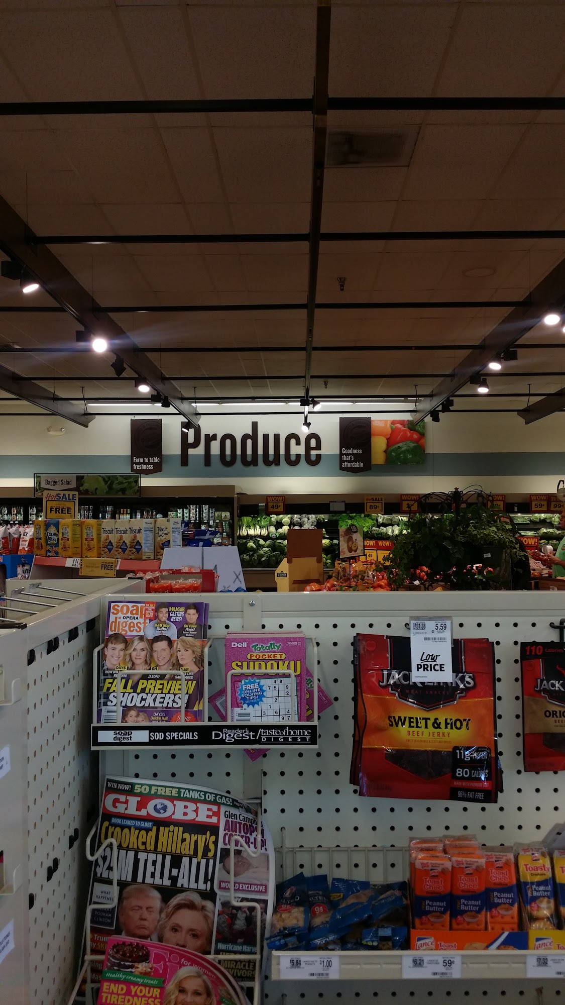 Usually has what I need. Recommend fresh sandwiches made there daily. Lines move fast with pleasant staff. Usually has fresh local produce when in season. Several good BOGO specials.