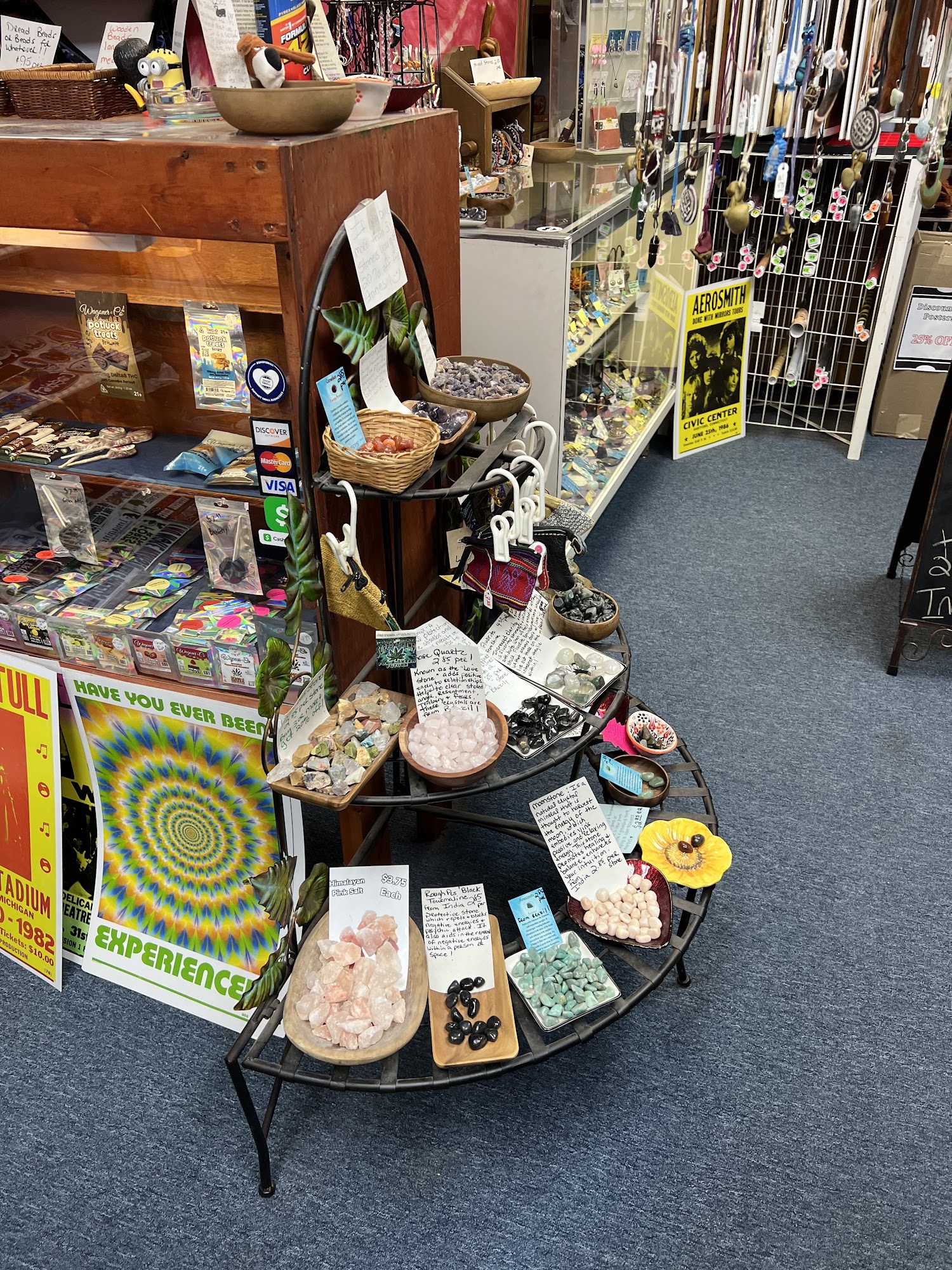 I call my store " My little hippie store" , filled to the brim with clothes, sterling silver jewelry,crystals, tapestries, handmade incense,glass pipes,water pipes, Delta 8,9,10 edibles, carts and flower. Sticker’s ,purses, dream catchers and unique merchandise from around the world!