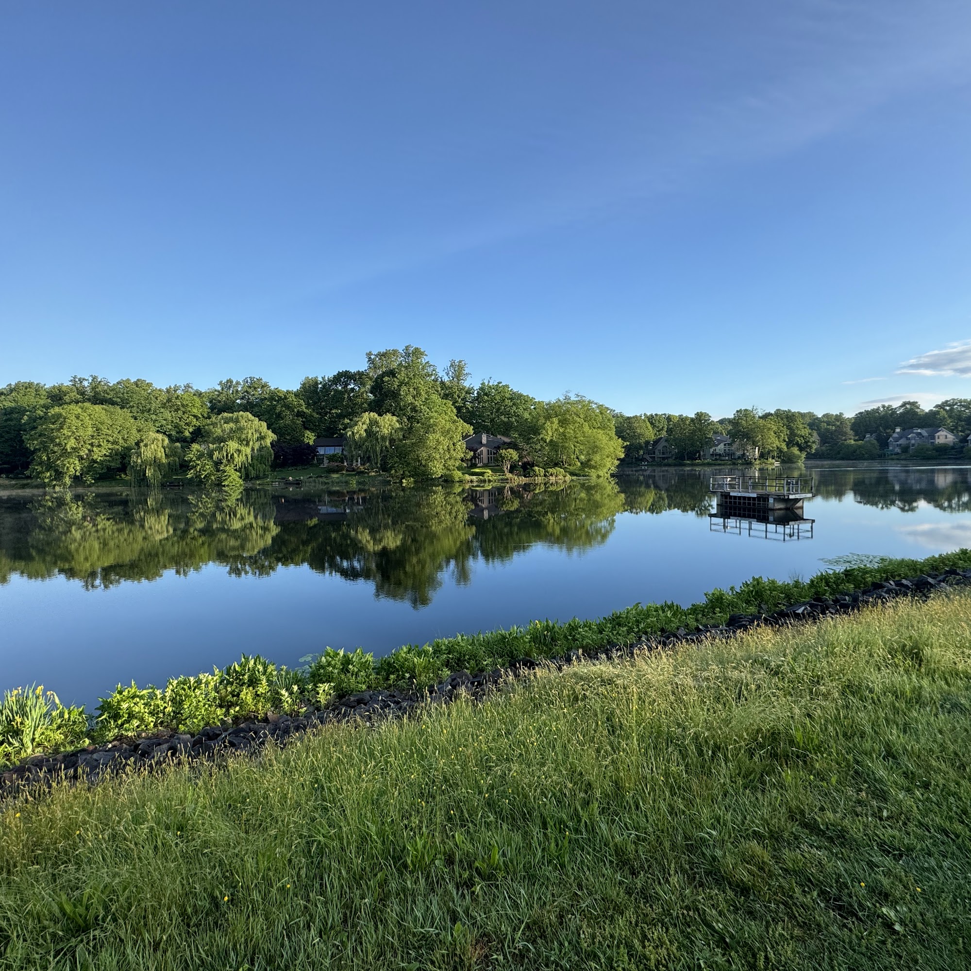 This is a beautiful park in every season. Walking trail goes by the lake. Exercise stops along near the fields. Baseball fields and tennis courts.