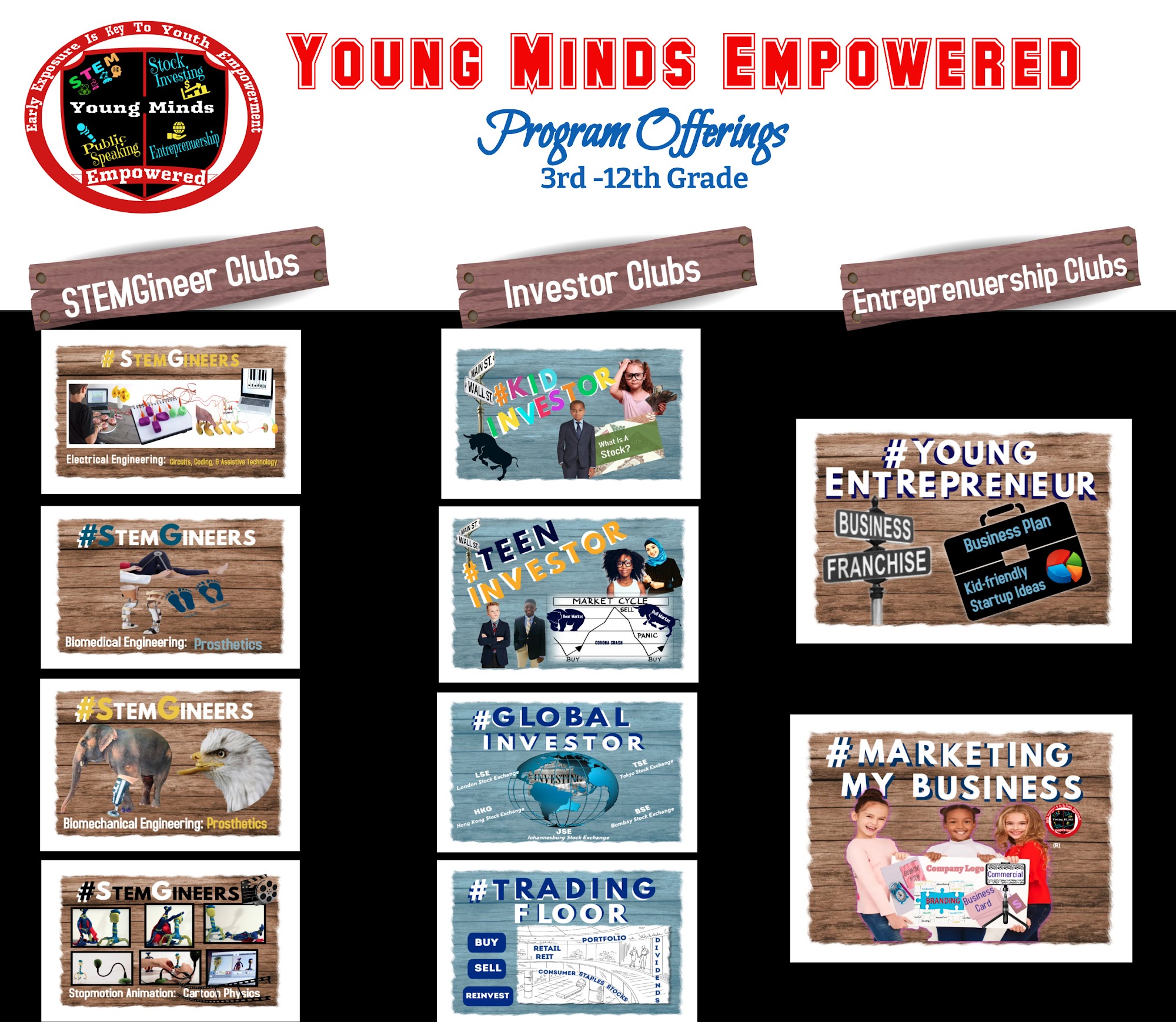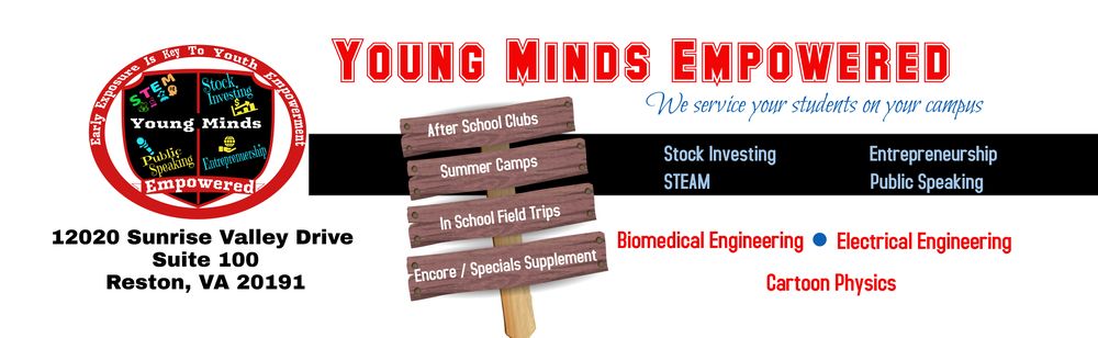 OUR MISSION: To empower 21st Century Young Minds (3rd - 12th graders) through early exposure to Niche Enrichment programs that intentionally incorporates Public Speaking, and Leadership Opportunities. NICHE After-school & Summer Camps: Bio-medical Engineering (Prosthetics), Youth Stock Investor Clubs, Cartoon Physics, Electrical Engineering, and Entrepreneurship. OUR VISION: To continuously develop and foster industry relevant, youth friendly, STEM, financial literacy, and business leadership curriculum that will Inspire, Motivate, Equip, and Cultivate 21st century critical thinkers. ONSITE: Virginia, DC, Maryland ONLINE LIVE REMOTE: 50 States