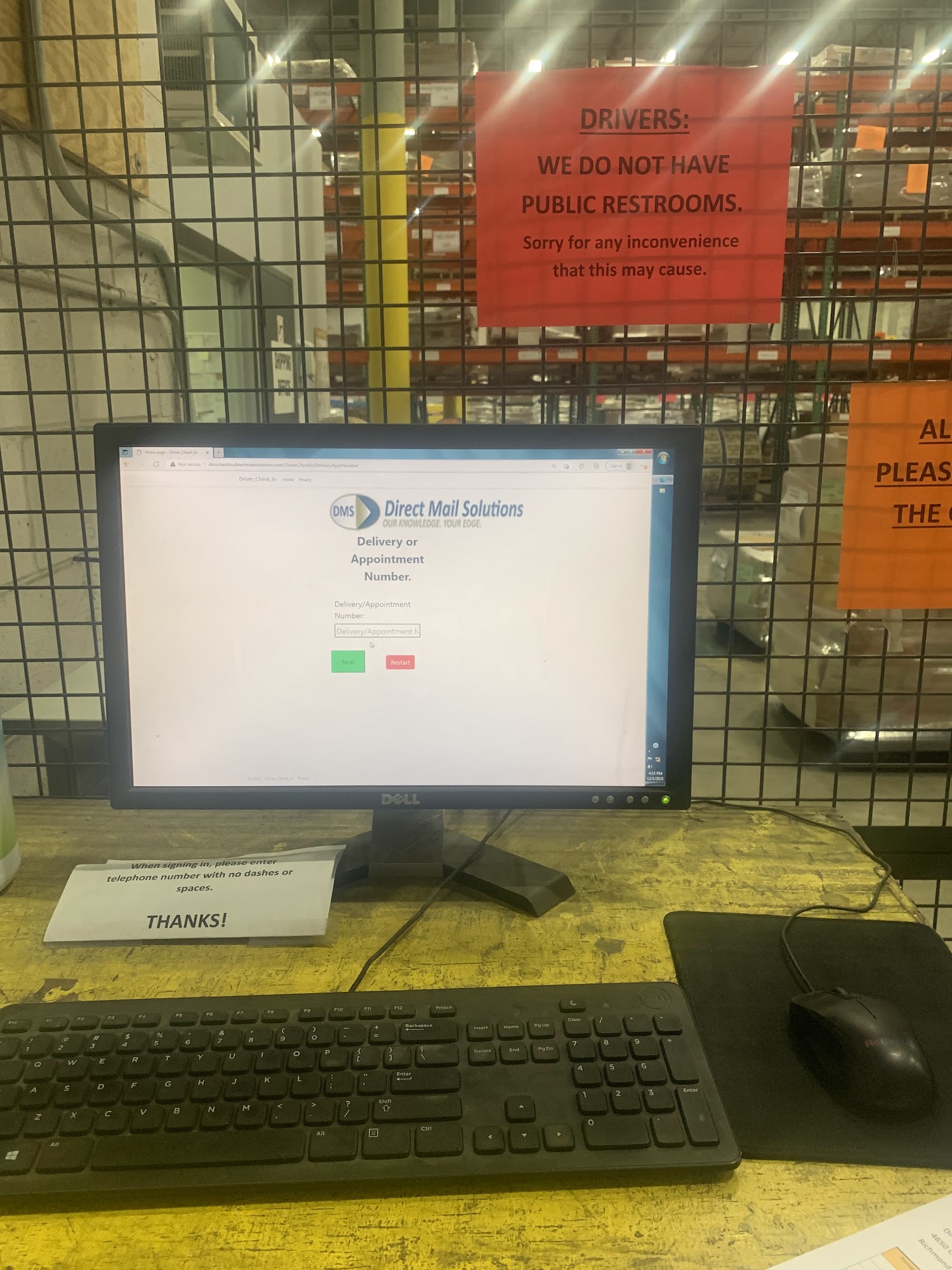 Shpg/Recg Lady is Nice.Typical PU Experience add in The Computer PU/DEL info Ck-In...Have an Appt??No Public Restrooms... Loading Time was Average for Mail PUs.... Nothing Special