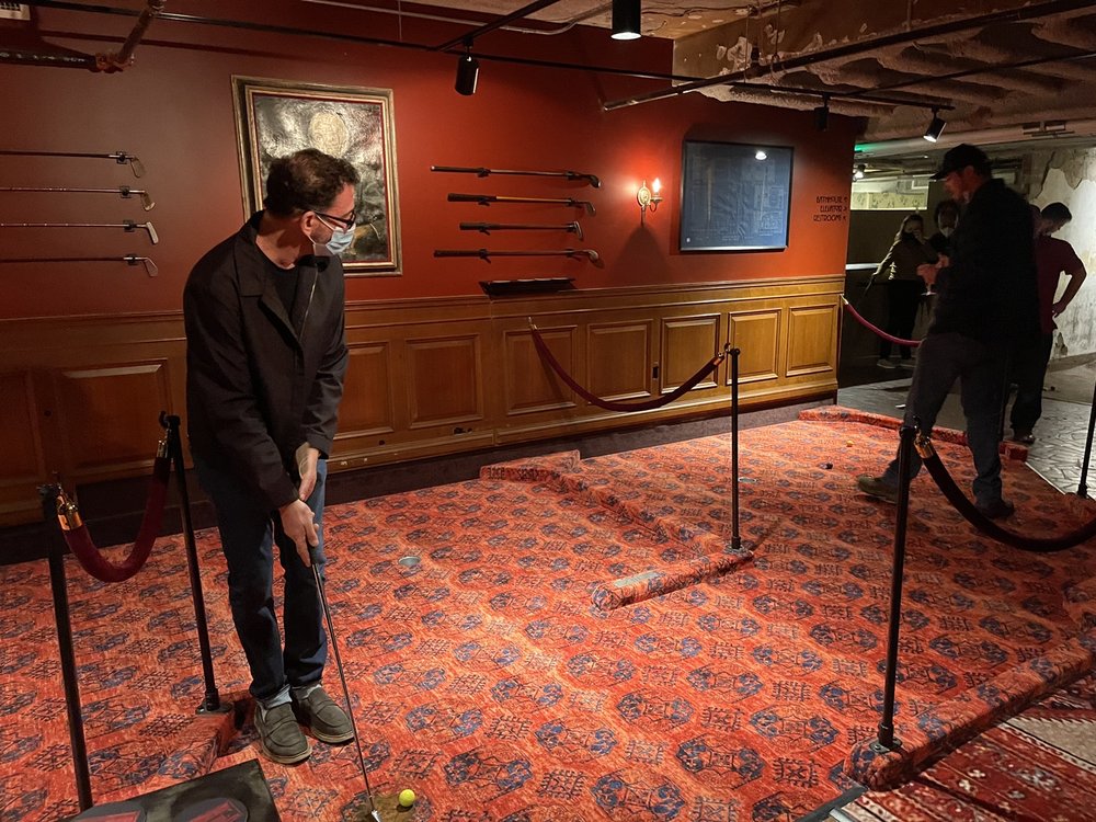 Super creative concept. Good price point, we came here for brunch on Sunday with a group of 4 at 10:30 reservation. After eating, we didn't have to wait to golf. Tons of fun, the course is really creative and cute. Perfect group activity. As we left though it looked like there was quite a line.