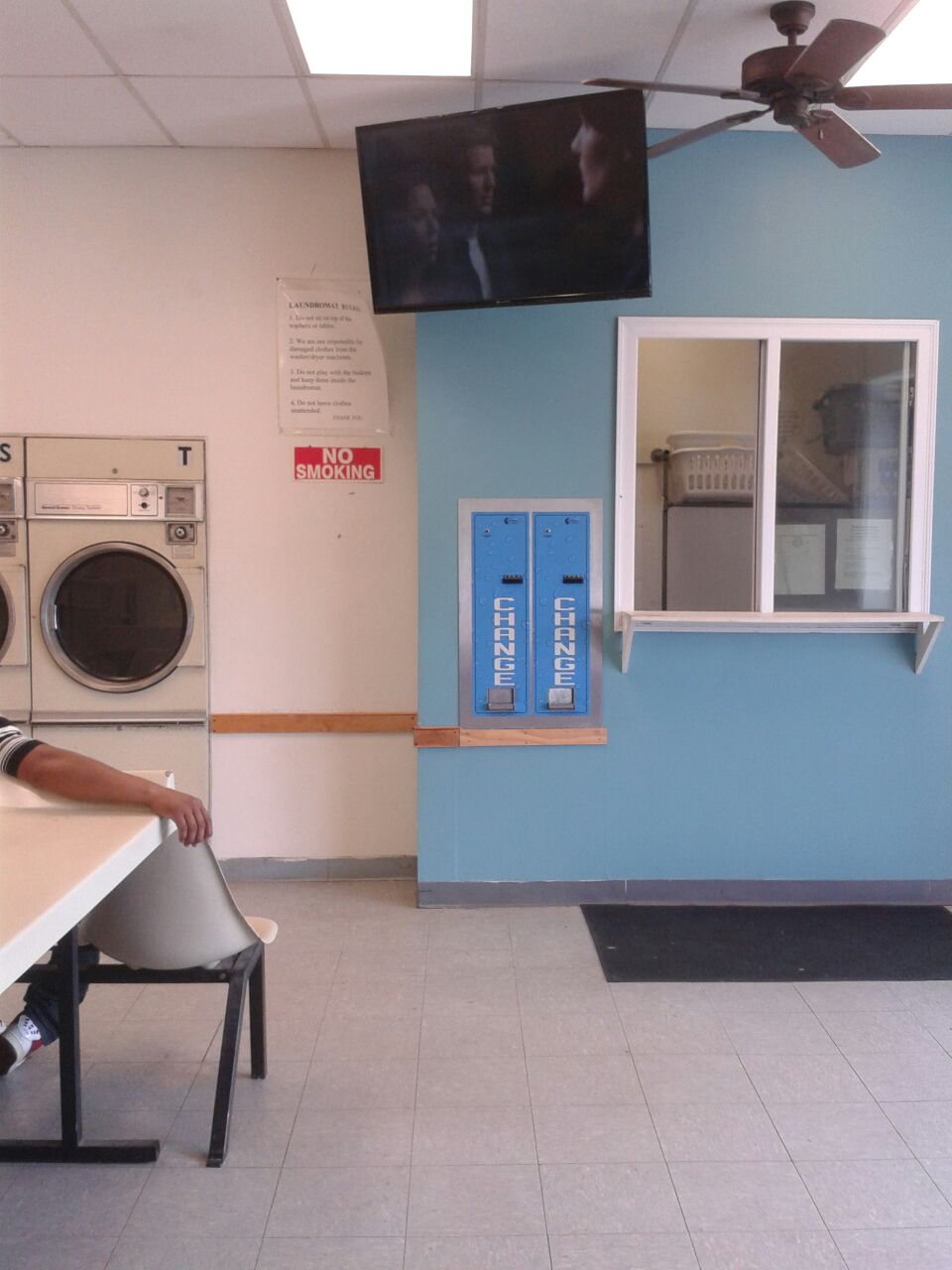 This laundrymat was clean and fast and convenient its not hot in the inside and the ppl are friendly and the worker is always around like a good manager should do.So if you are evtaround this area and need to wash your clothes this will be a good ? place to go from my experience