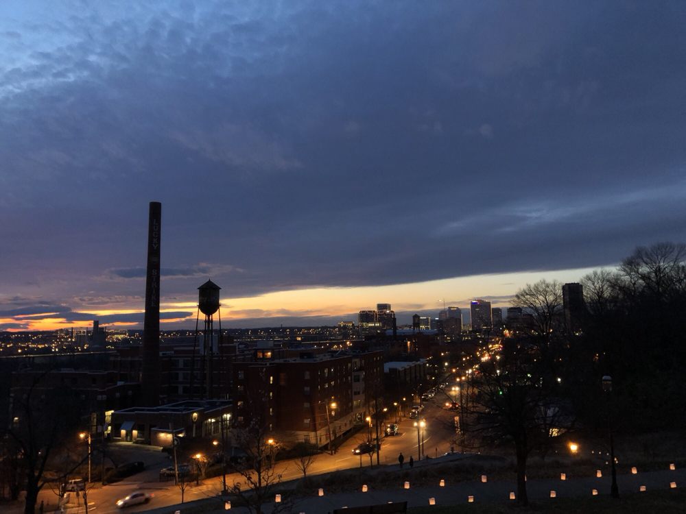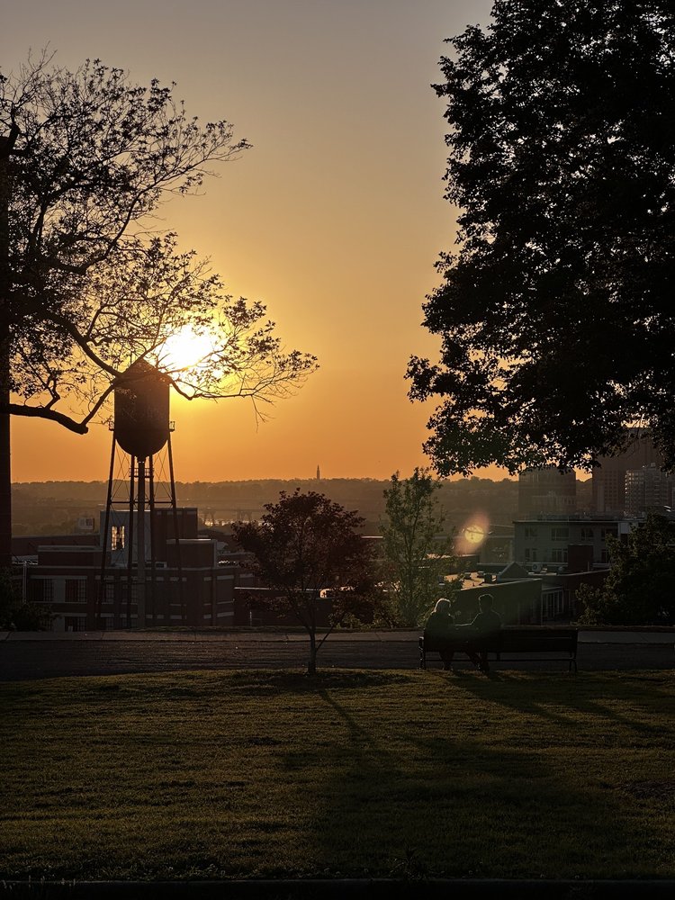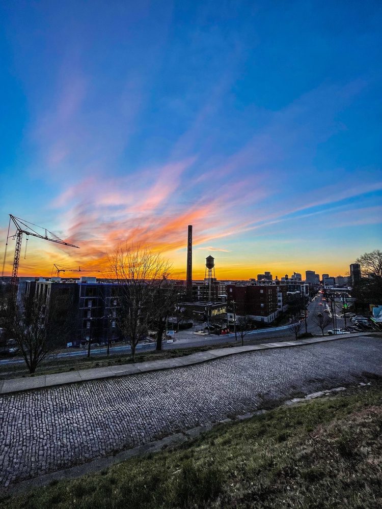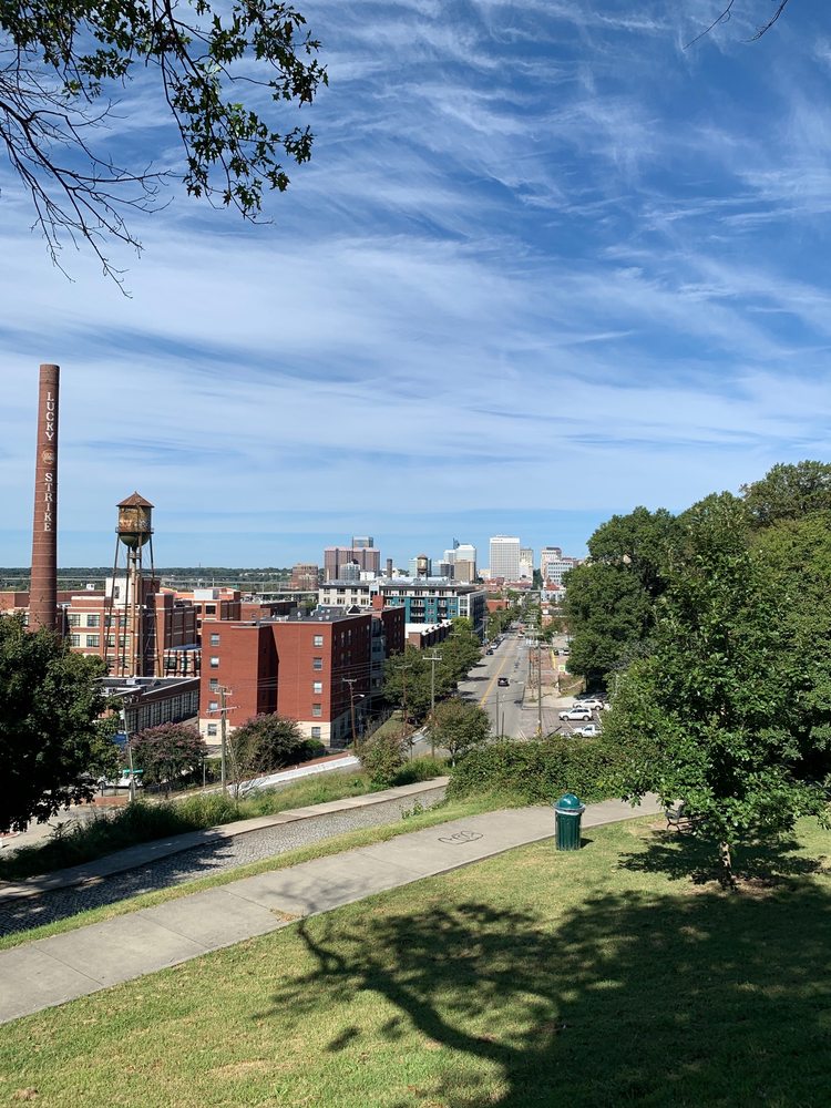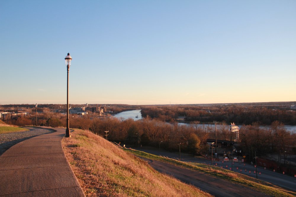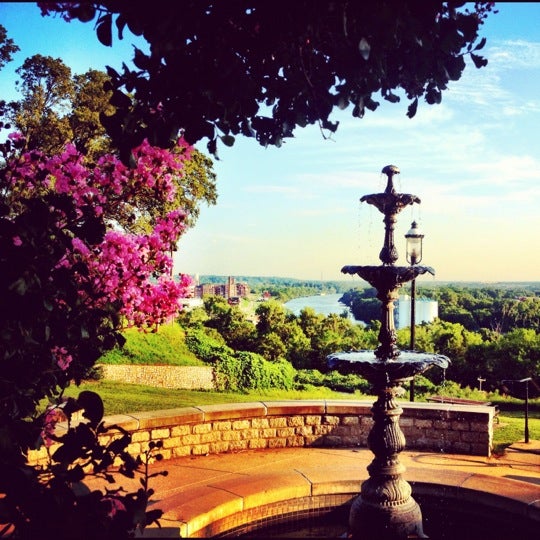 Libby Hill Park is a popular destination known for its stunning views of the river and the city of Richmond, especially during sunset. Visitors enjoy walking their dogs, picnicking on the grassy areas, and taking in the beautiful scenery, including a lovely fountain that serves as a centerpiece. While the park can get busy during sunset hours, it offers a peaceful atmosphere amidst the bustling city. However, it lacks public restrooms, which can be a drawback. The park is particularly noted for its picturesque overlook of the James River and the revitalizing Manchester district, making it a great spot for relaxation and enjoyment in nature.