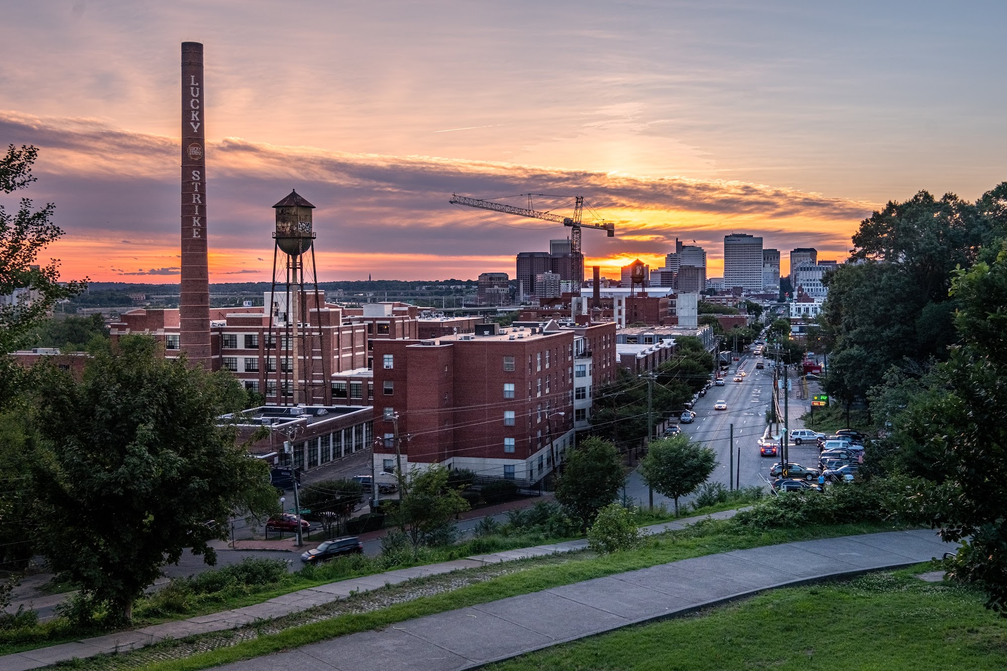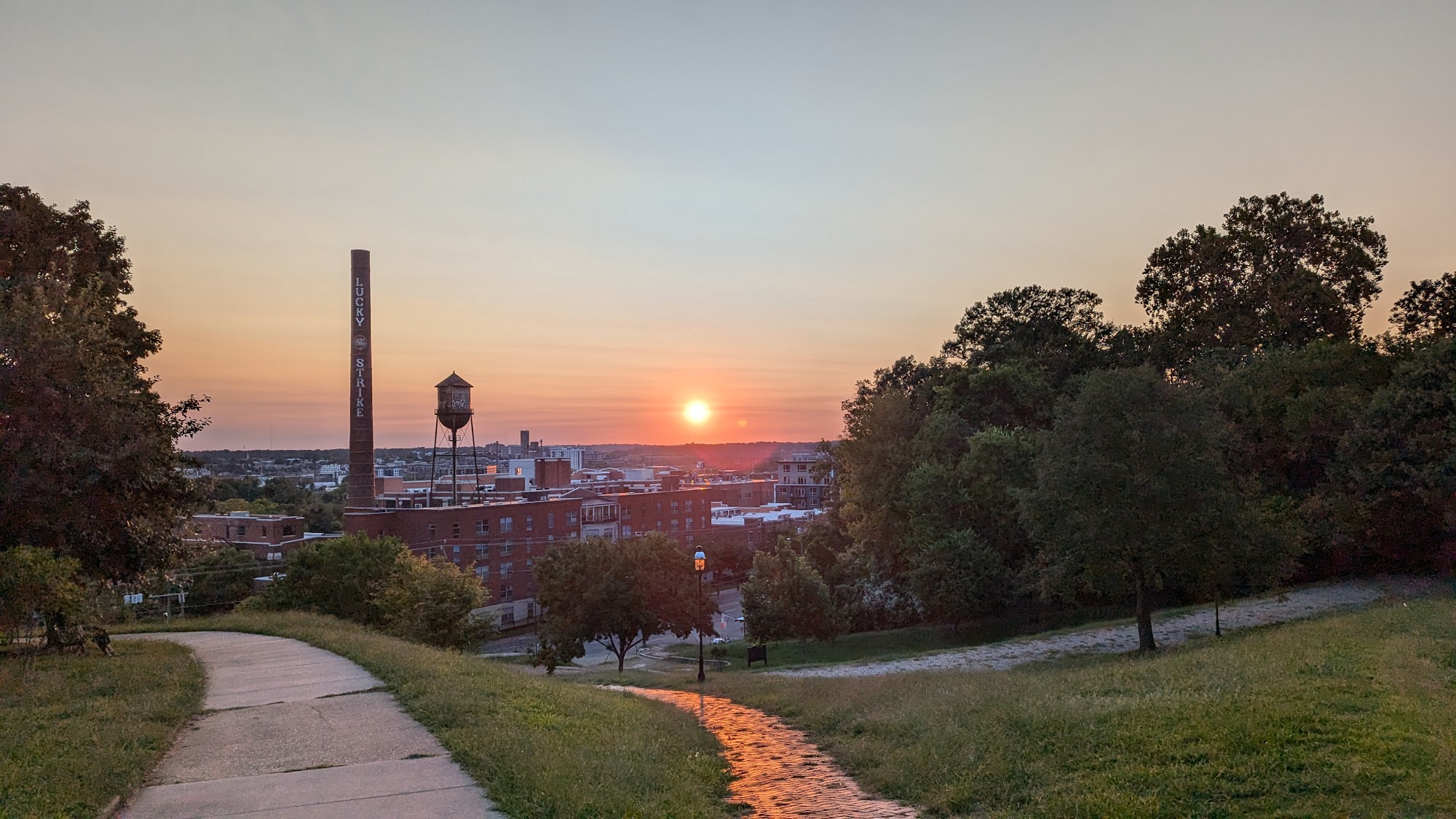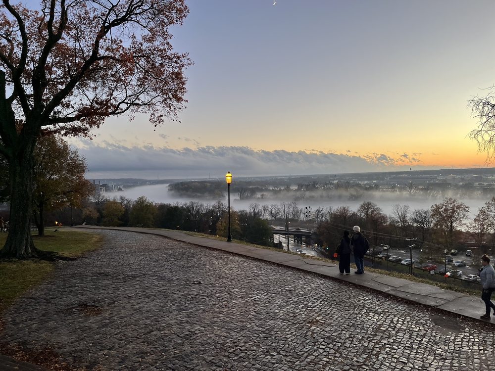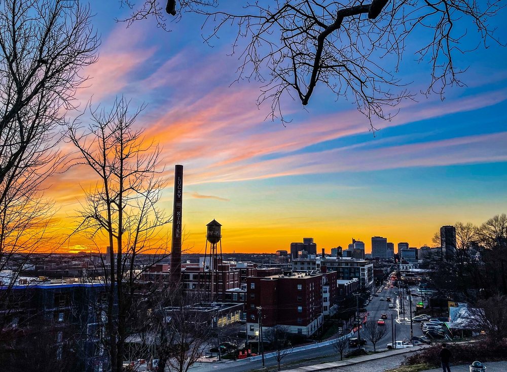 Libby Hill Park is a popular destination known for its stunning views of the river and the city of Richmond, especially during sunset. Visitors enjoy walking their dogs, picnicking on the grassy areas, and taking in the beautiful scenery, including a lovely fountain that serves as a centerpiece. While the park can get busy during sunset hours, it offers a peaceful atmosphere amidst the bustling city. However, it lacks public restrooms, which can be a drawback. The park is particularly noted for its picturesque overlook of the James River and the revitalizing Manchester district, making it a great spot for relaxation and enjoyment in nature.