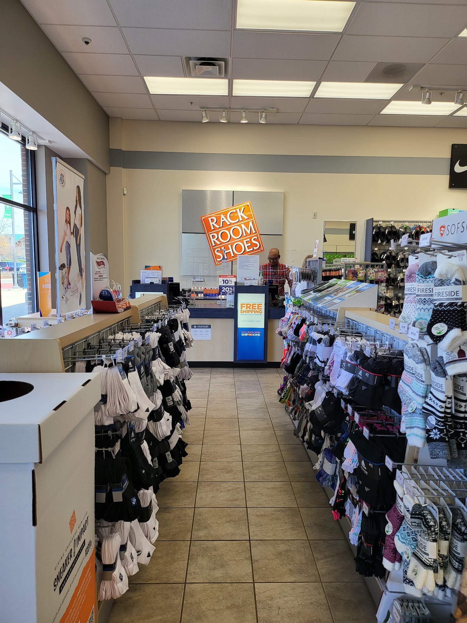 Rack Room Shoes offers a clean, neat, and organized store with an average pricing structure. The store provides a great assortment of name brands for its size. The staff is very friendly and very helpful, assisting with selection and ordering sizes not in stock, with very fast shipping. The return process is very easy. Customers report a positive experience with the service and express intent to shop there again.
