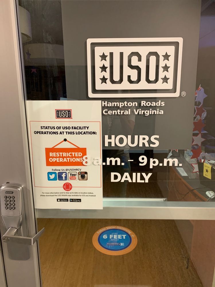 This is a fantastic USO. It's somewhat hidden behind the luggage pick up outside of the gate and can be hard to find. The two ladies volunteering there were very kind and friendly. They have a great selection of food and drinks at this USO. The Hampton Roads-Central USO is a great option, especially since RIC has no airport...