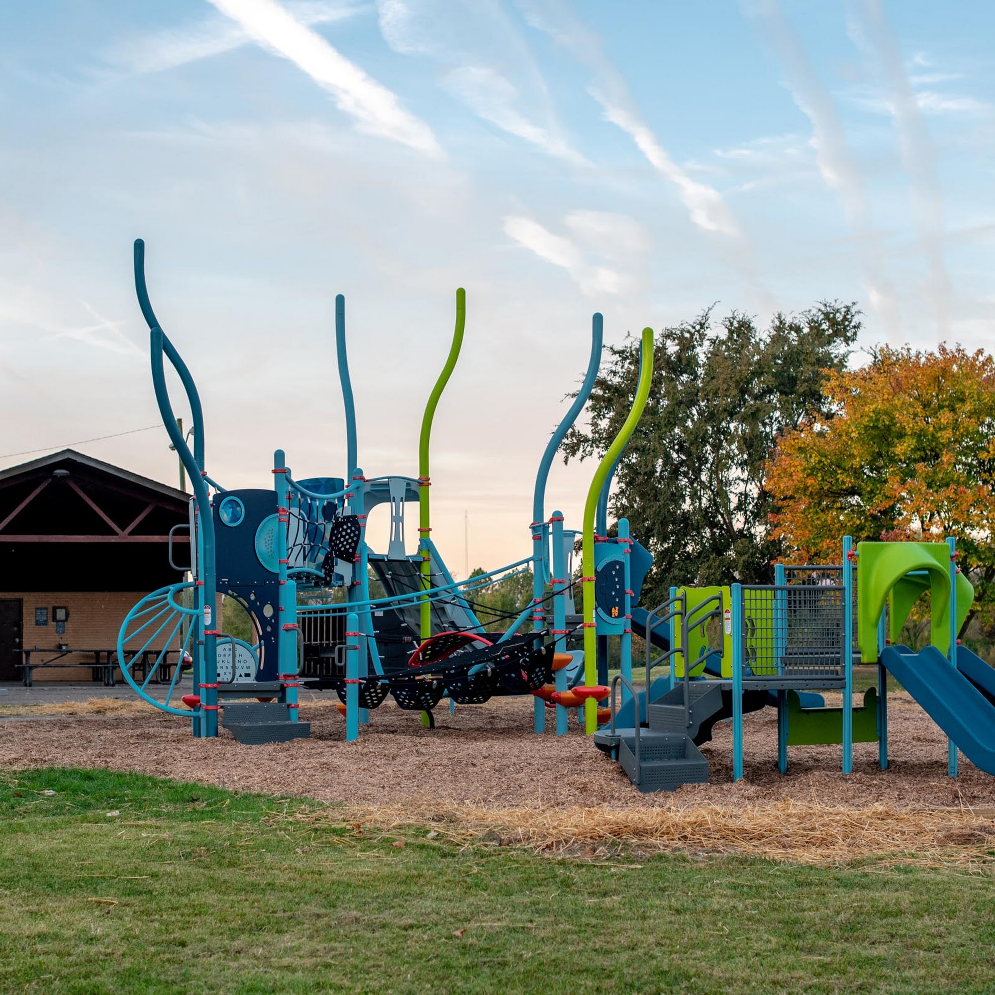 Decent for people in the neighborhood but I wouldn't drive here. Small park.Nice playground and a few picnic tables. Lots of grass and that's about it. Unless I missed something. Dogs on leash are allowed.Playground: Nice. Probably new.