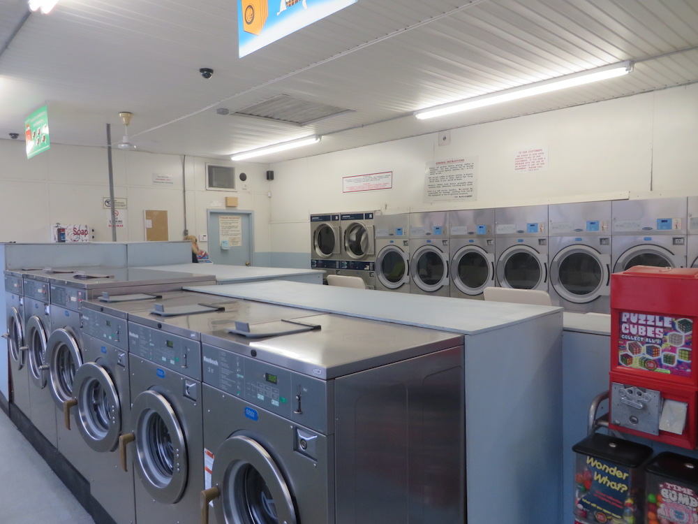 Clean small place. On washing machines you can use coin or credit card. Not busy at all (when i went). All the machines at the time are all working.