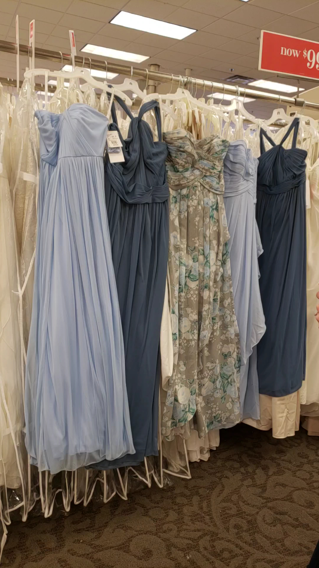 The store arrangements of Gowns was perfect. I was able to go down alleys with ease. The Representative was pleasant , very patient and helpful. The quailty and prices of the Gowns were within my range.
